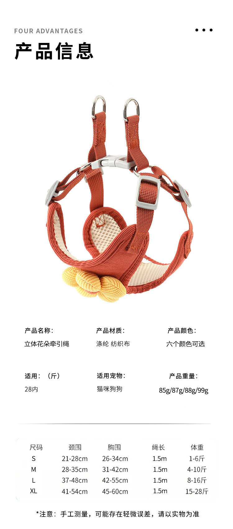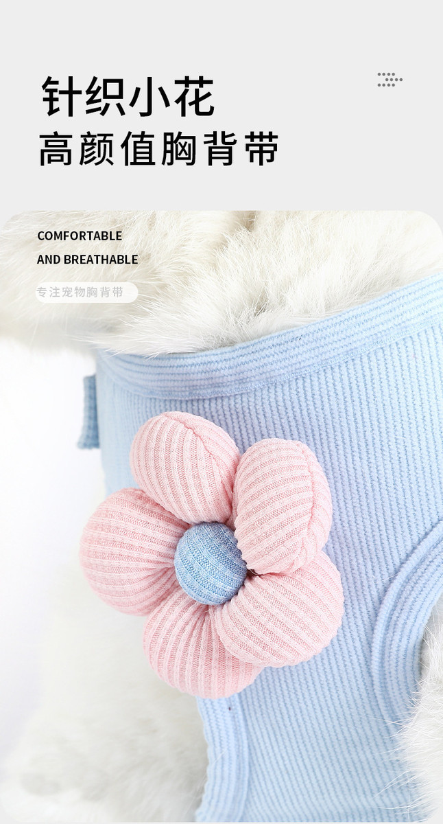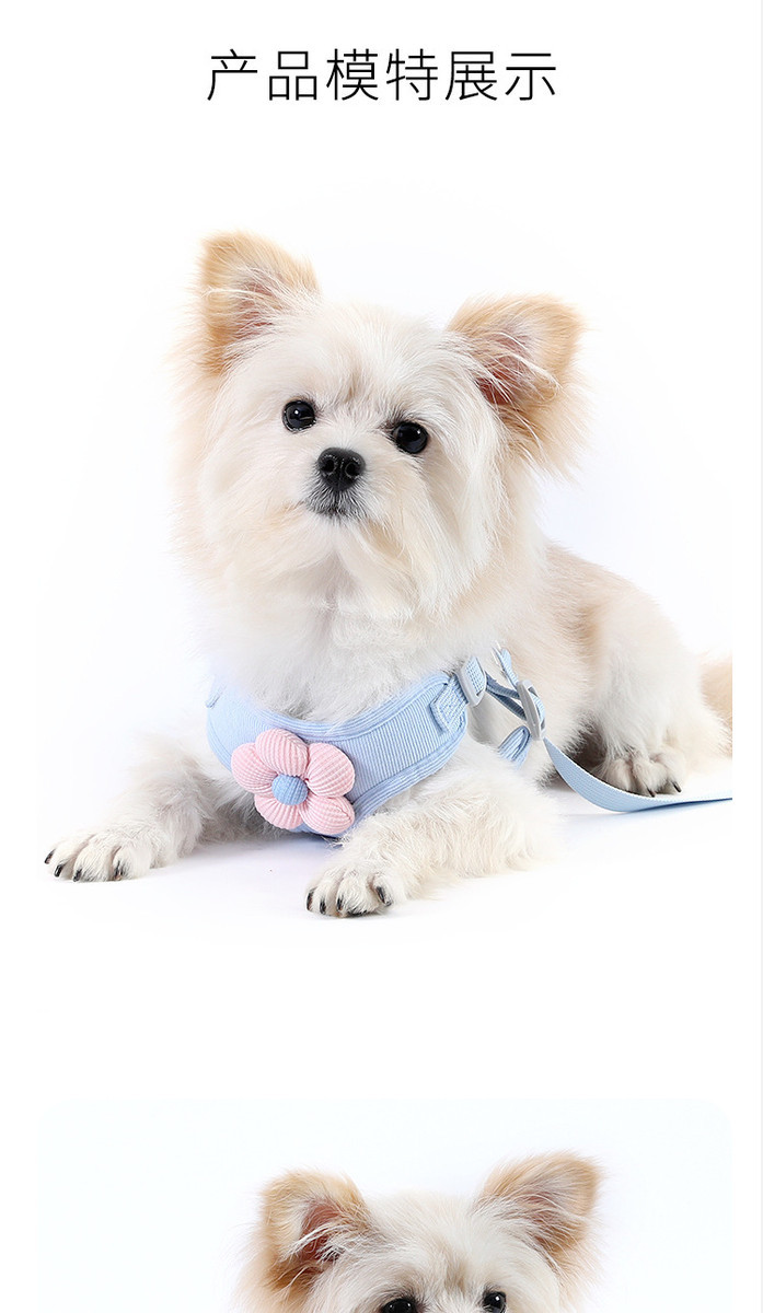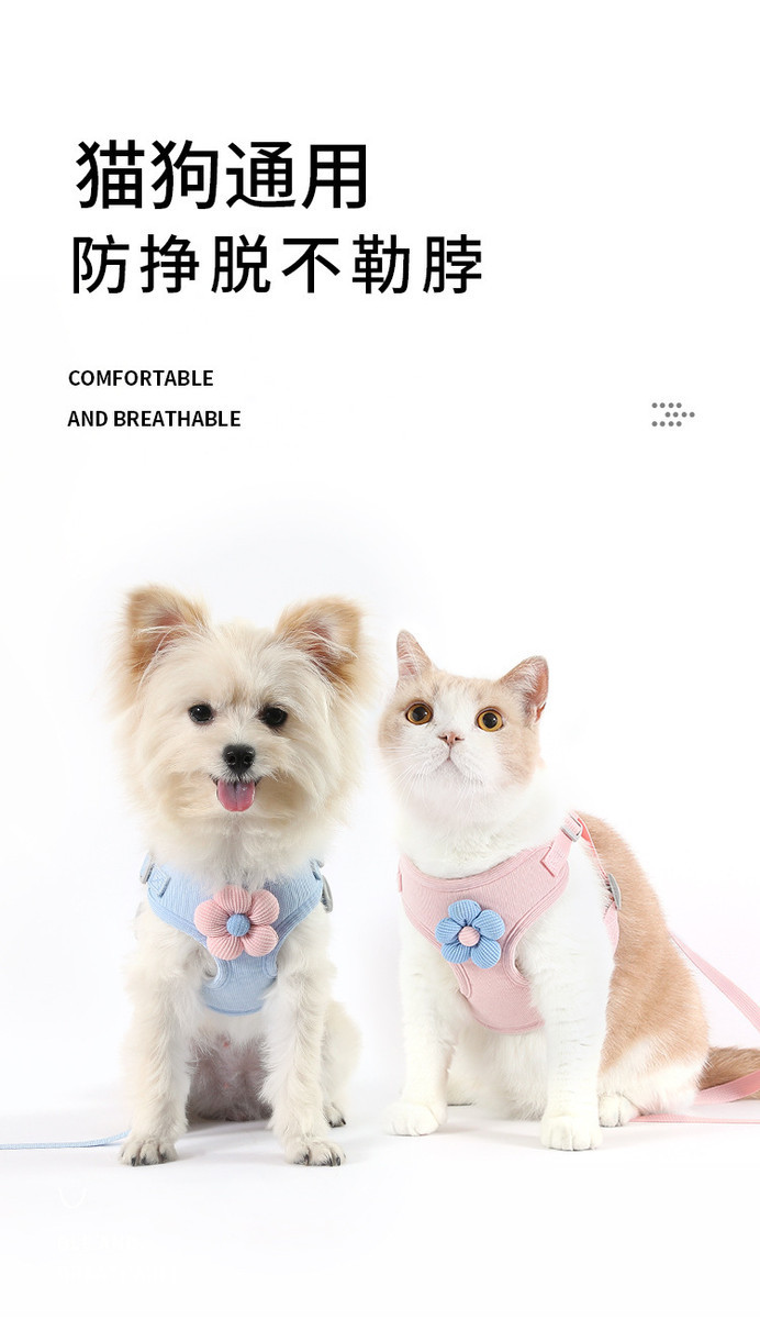 宠物小花背心牵引绳狗狗卡通立体配件遛狗绳子猫咪外出防挣脱胸背