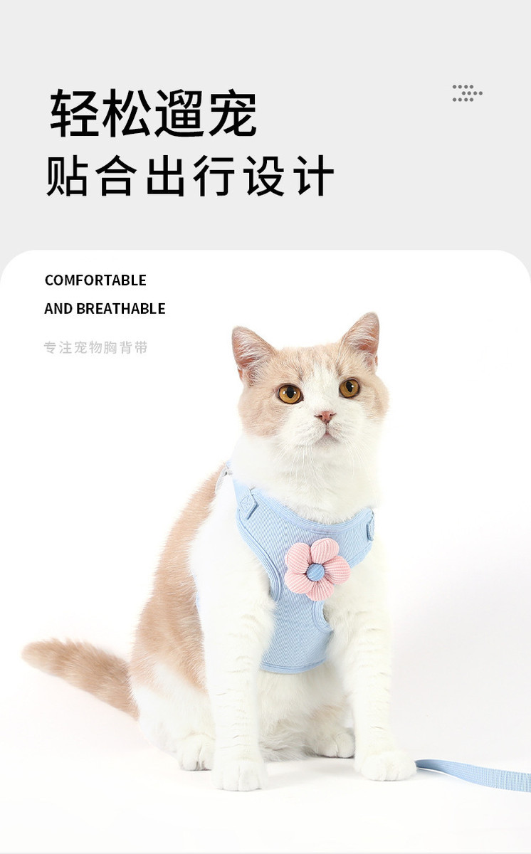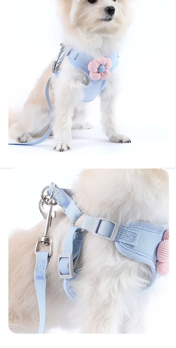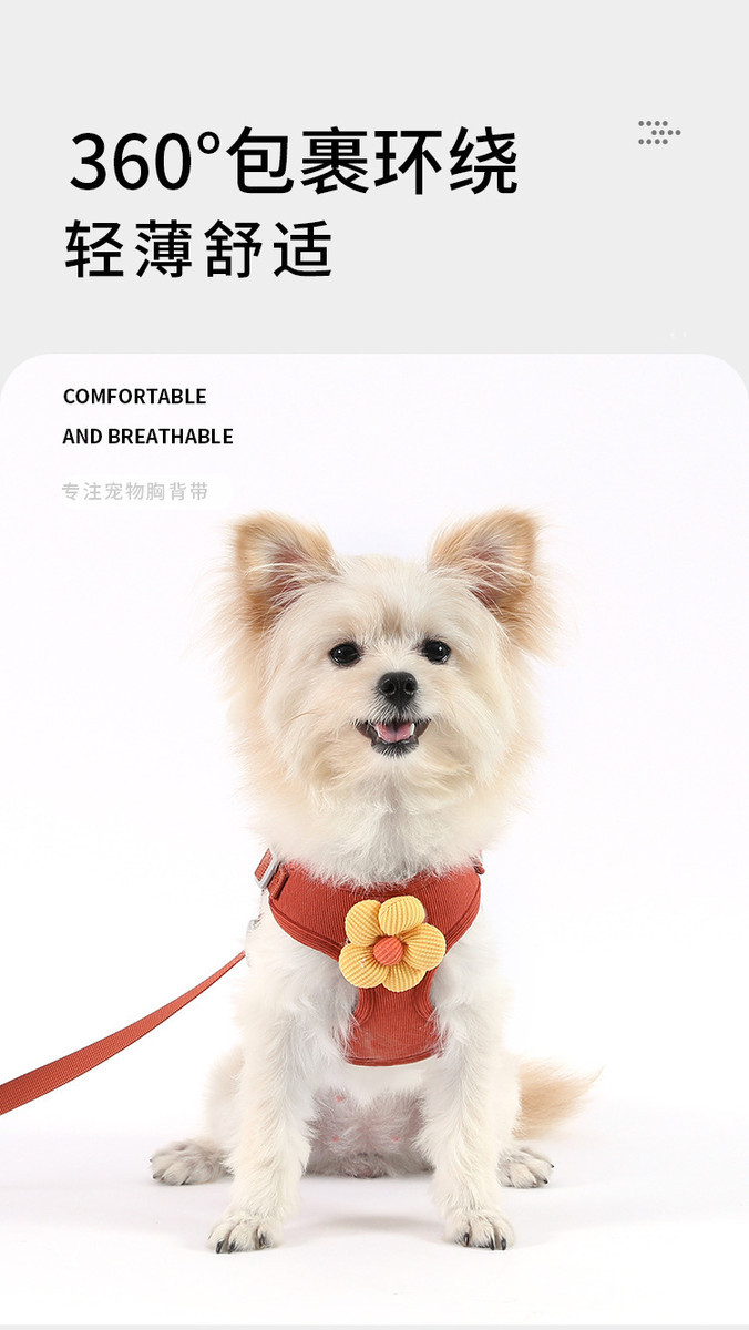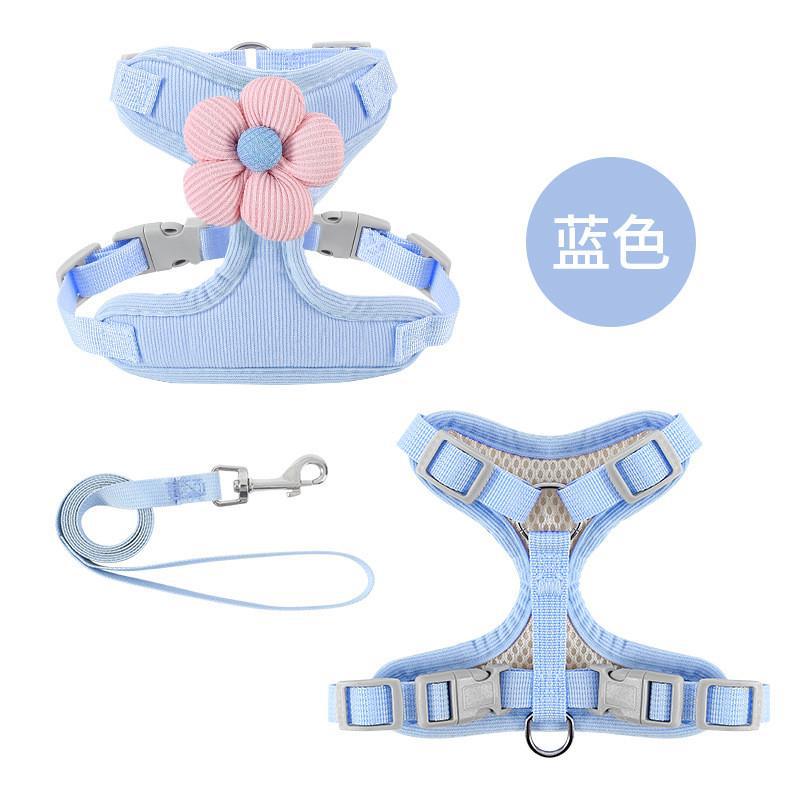 宠物小花背心牵引绳狗狗卡通立体配件遛狗绳子猫咪外出防挣脱胸背