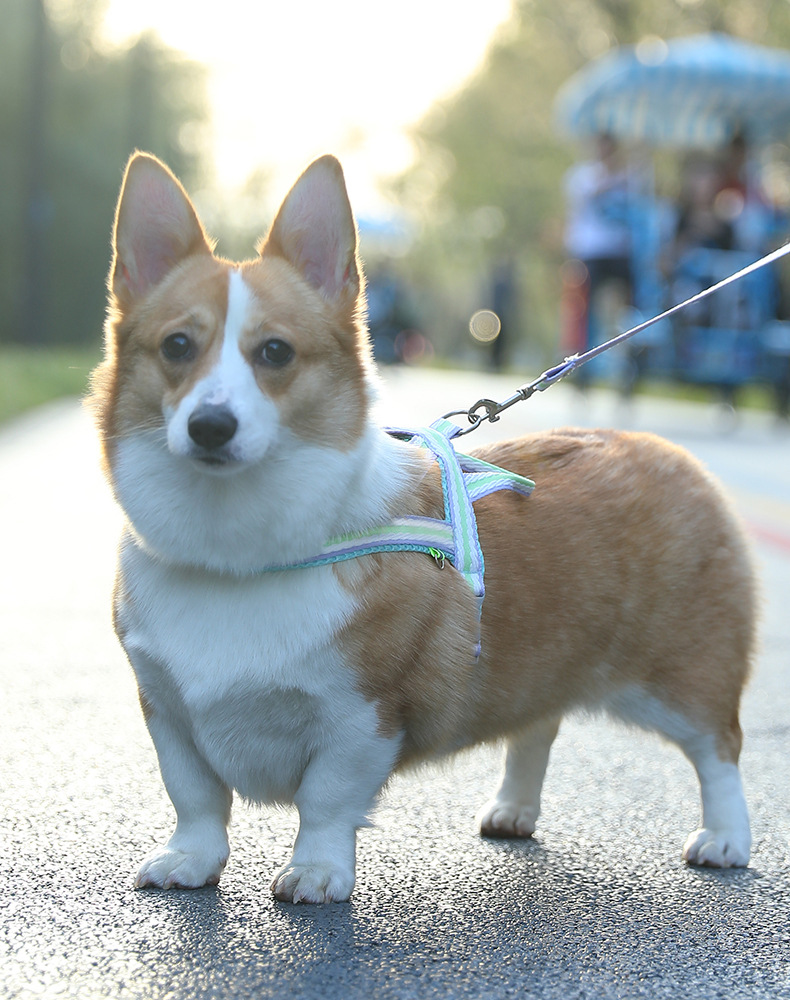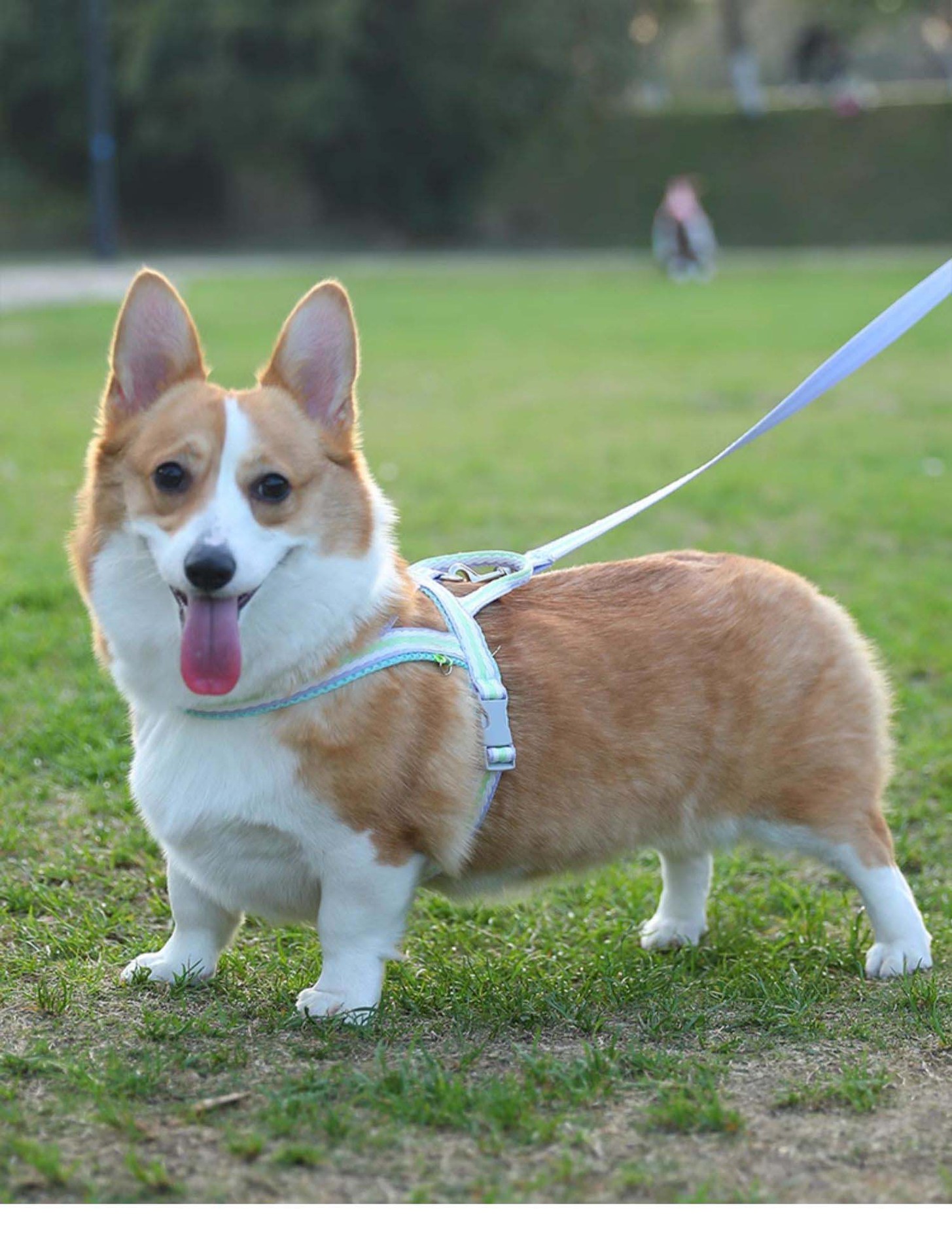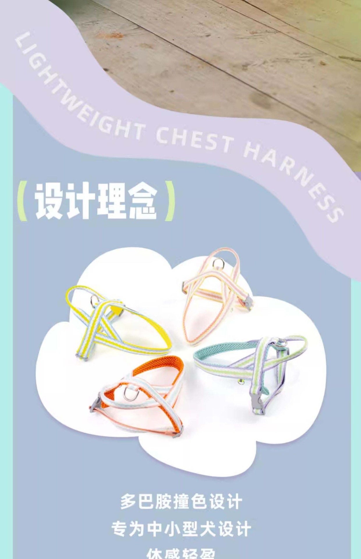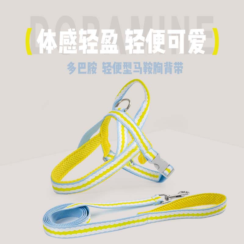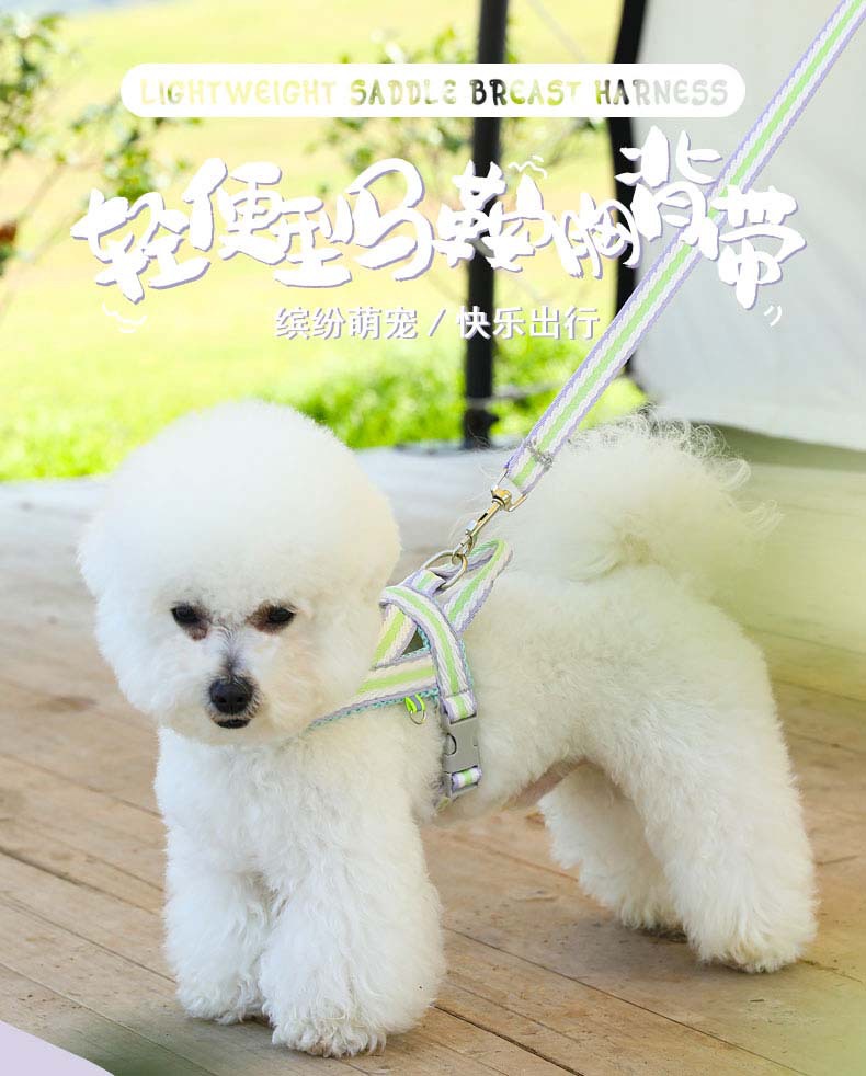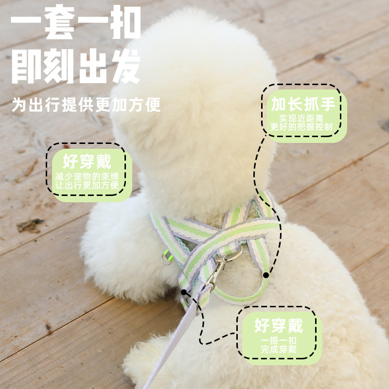 清新夏季透气狗狗牵引绳中小型犬泰迪比熊柯基可调节马鞍式胸背带