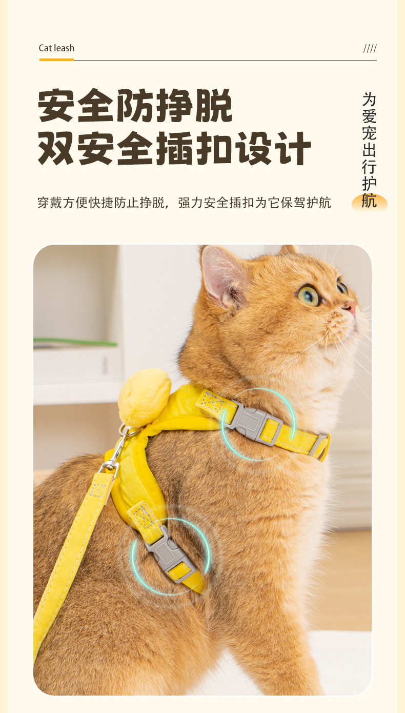 猫咪牵引绳外出防挣脱溜猫神器工字胸背式可调节加长猫牵引绳
