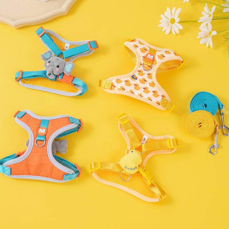 猫咪牵引绳防走丢外出小狗狗背心式可调节黄鸭遛猫猫栓猫绳子