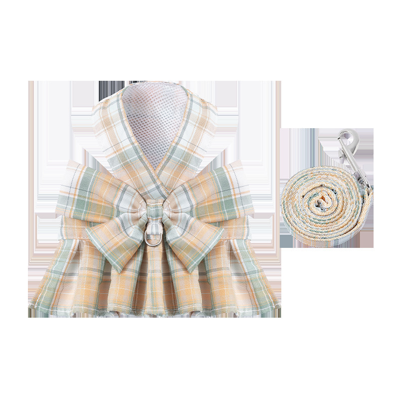 宠物猫咪格子裙子胸背带牵引绳狗狗猫咪背心裙服饰