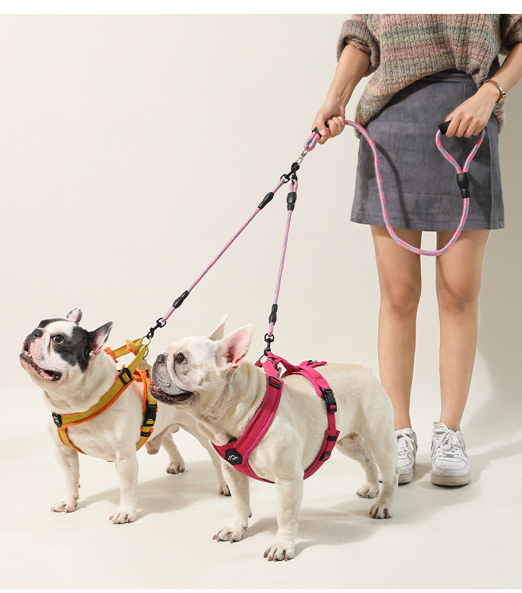 宠物双头遛狗绳 一拖二牵引绳防缠绕可拆卸宠物狗牵引带宠物