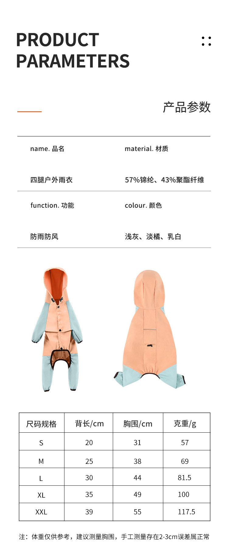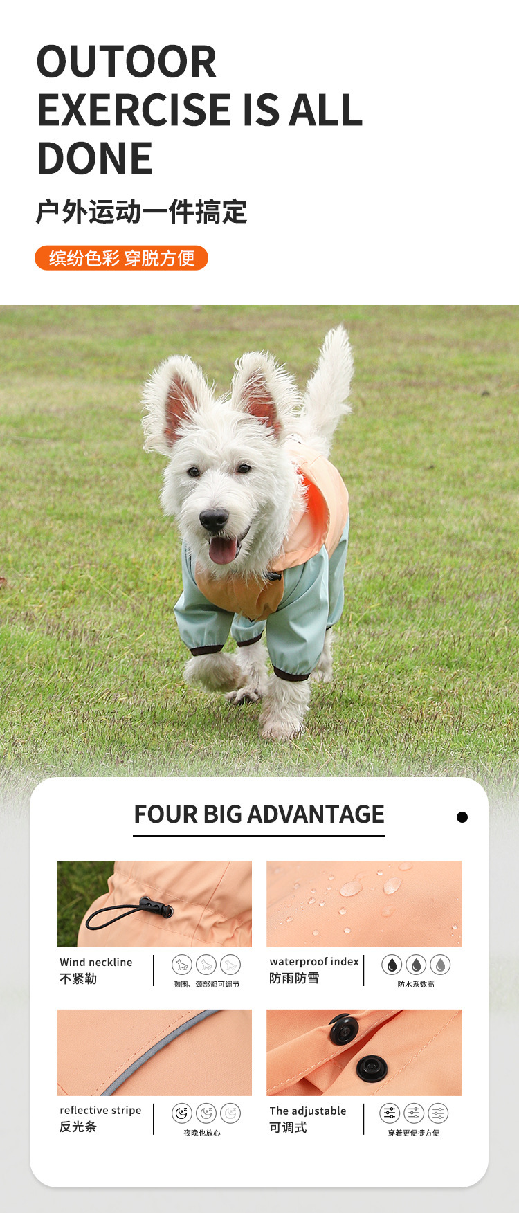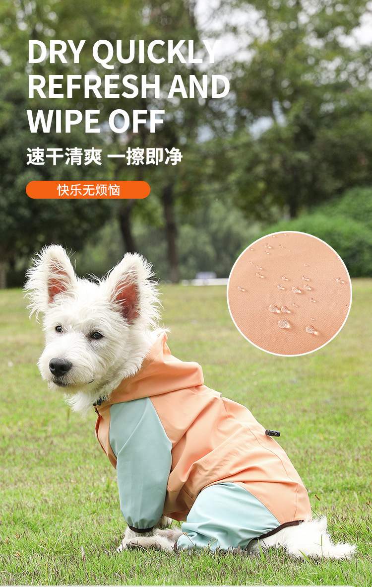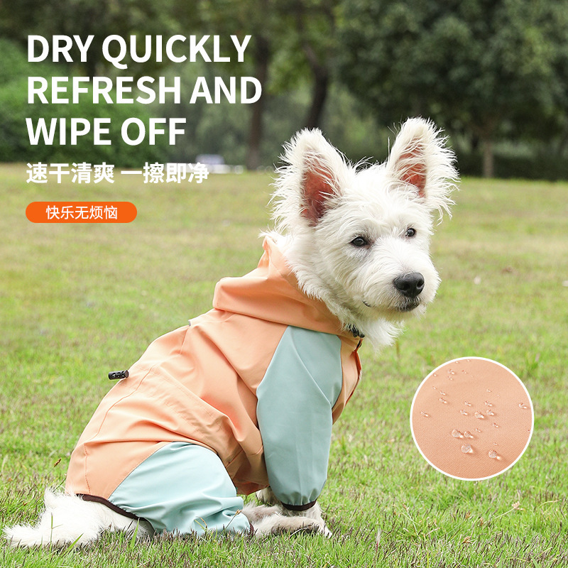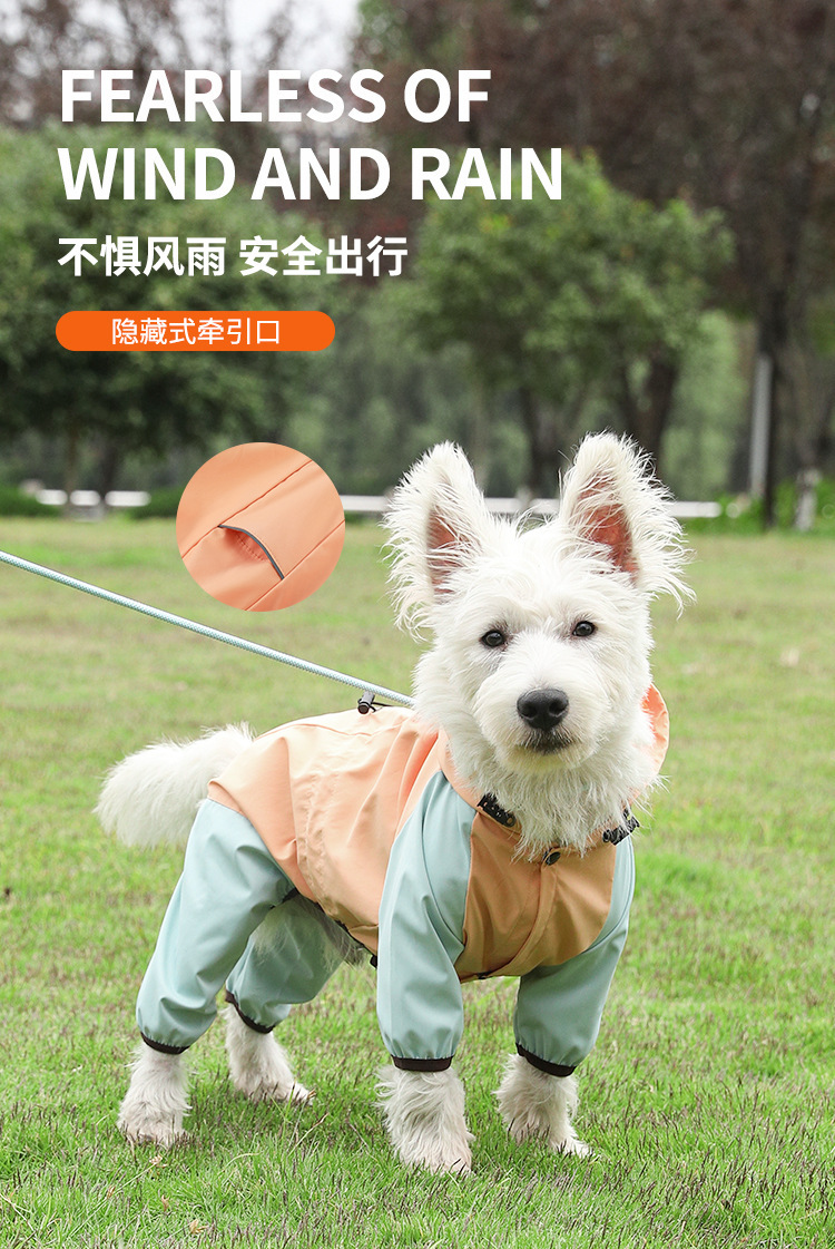 柯基狗狗雨衣四脚防雨透气反光衣服 可牵引宠物雨衣雨天外出衣服