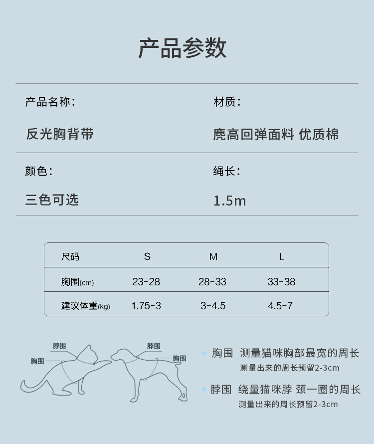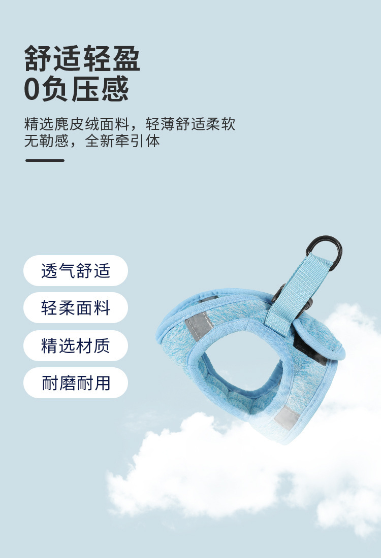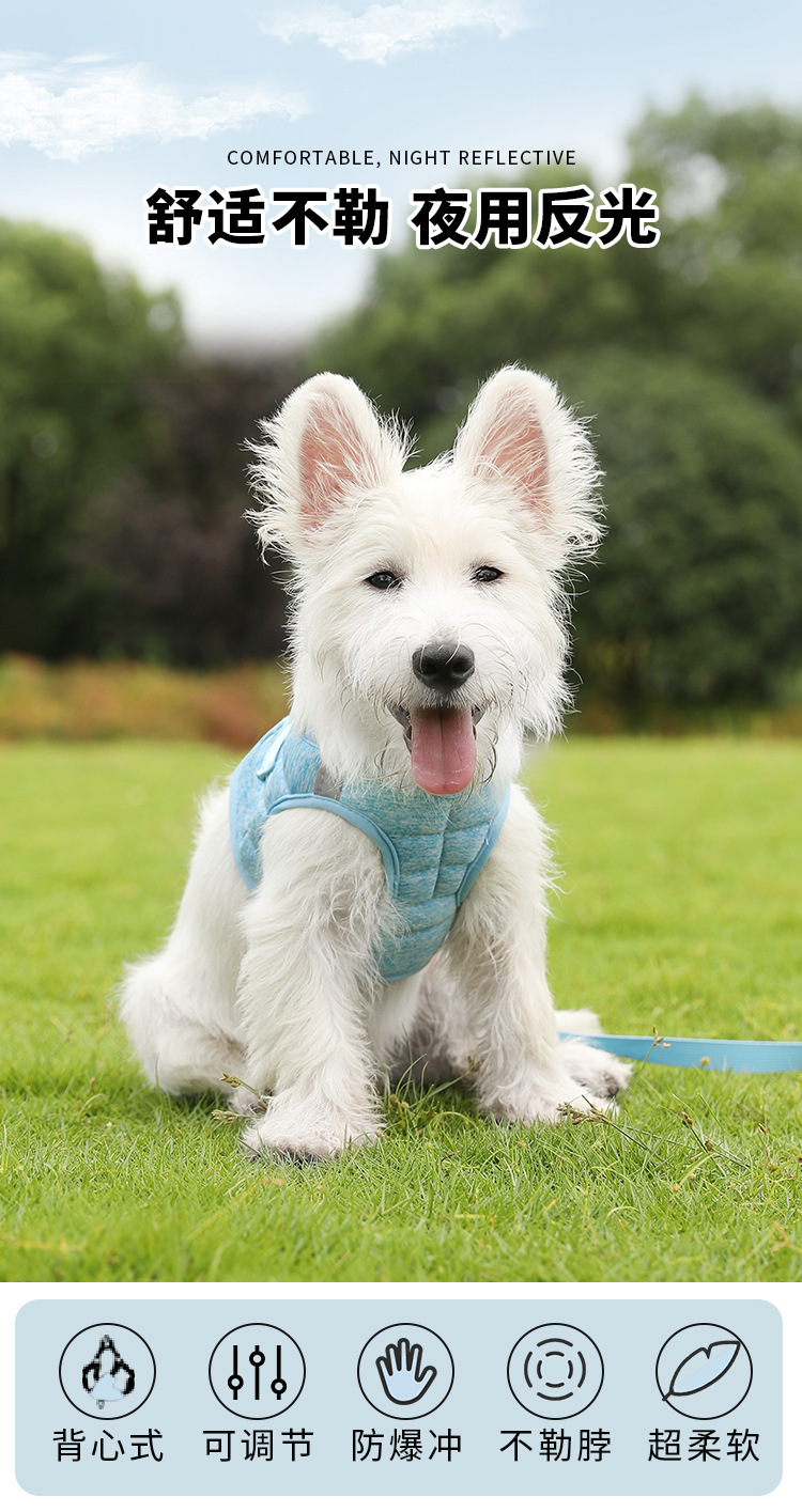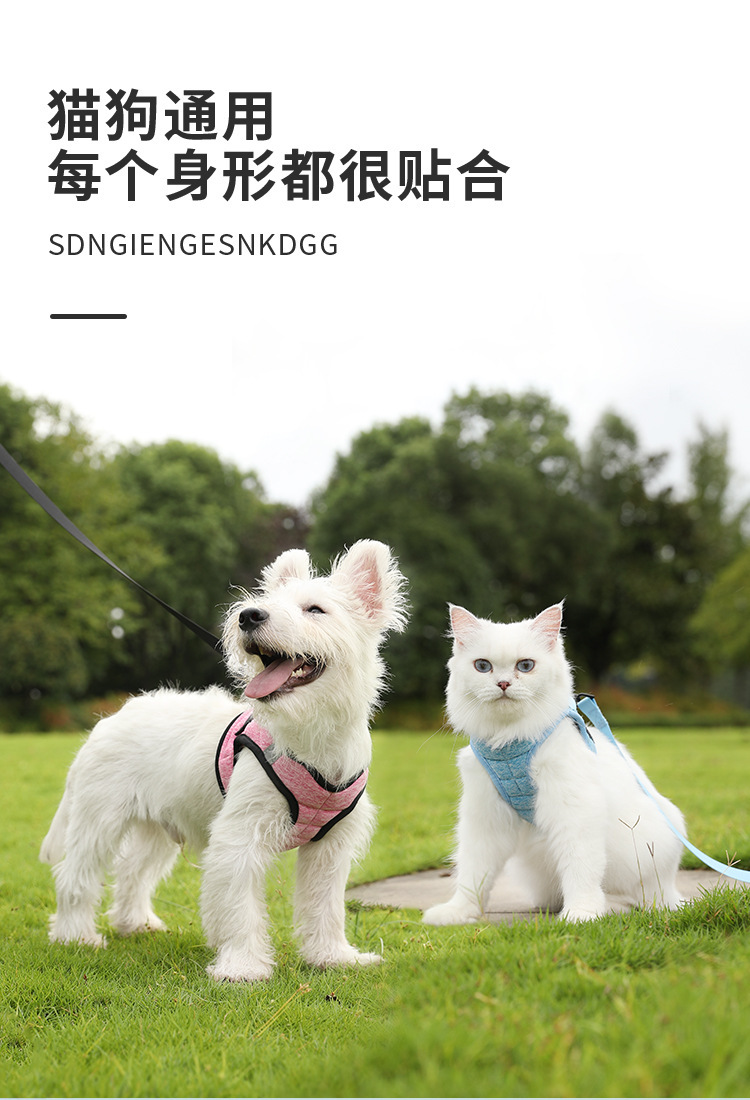 宠物狗狗牵引绳幼猫反光背心式胸背带遛猫绳防挣脱透气小型犬链子