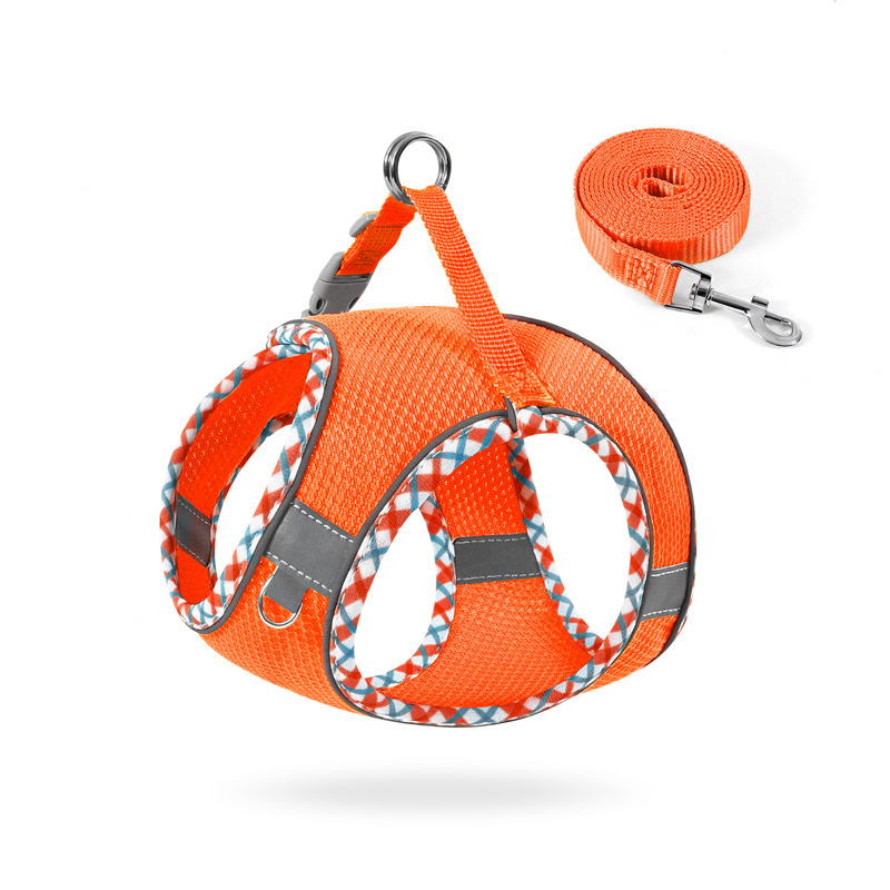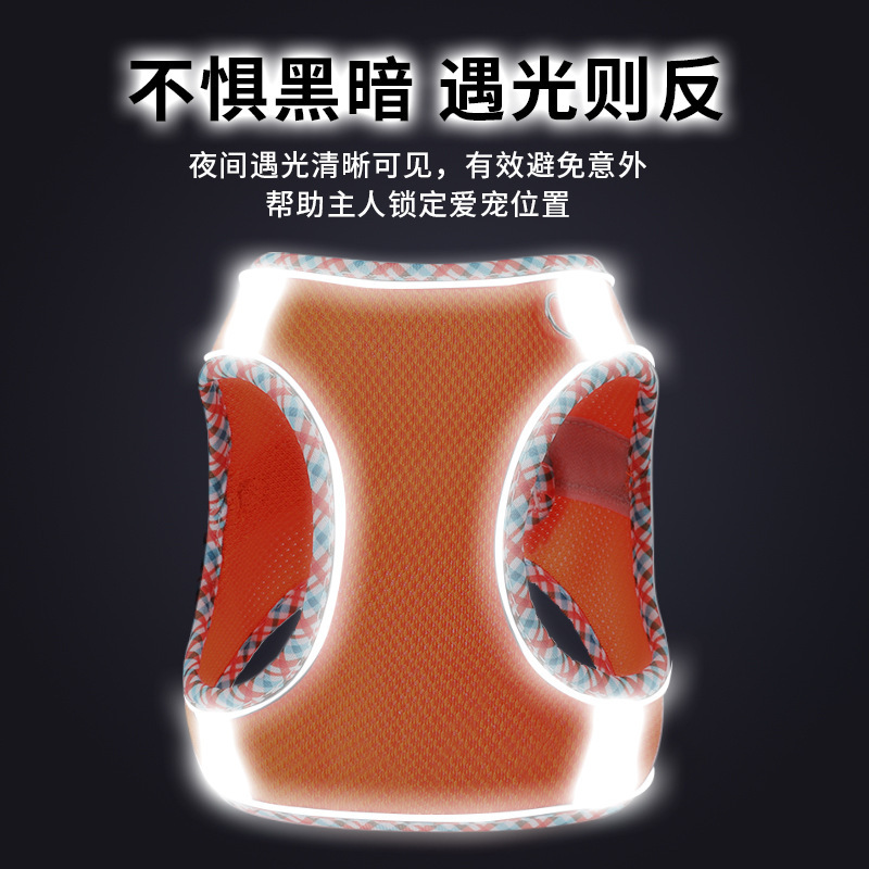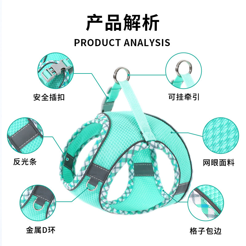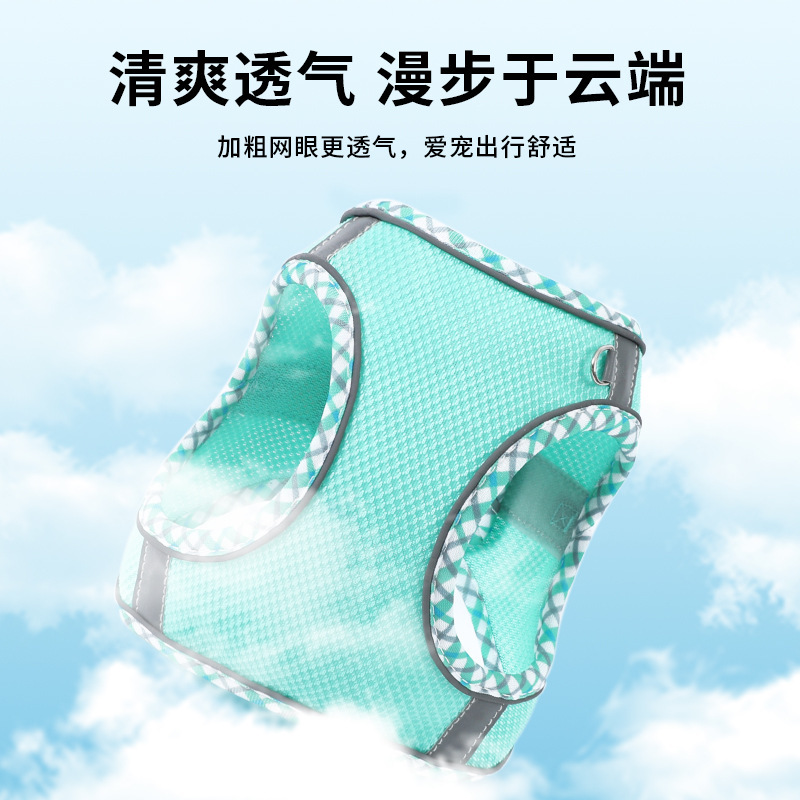 猫咪牵引绳背心式小型犬遛狗猫咪牵引绳外出胸背带防挣