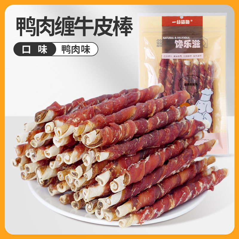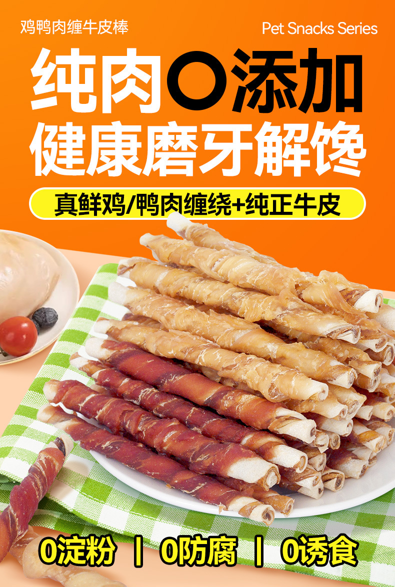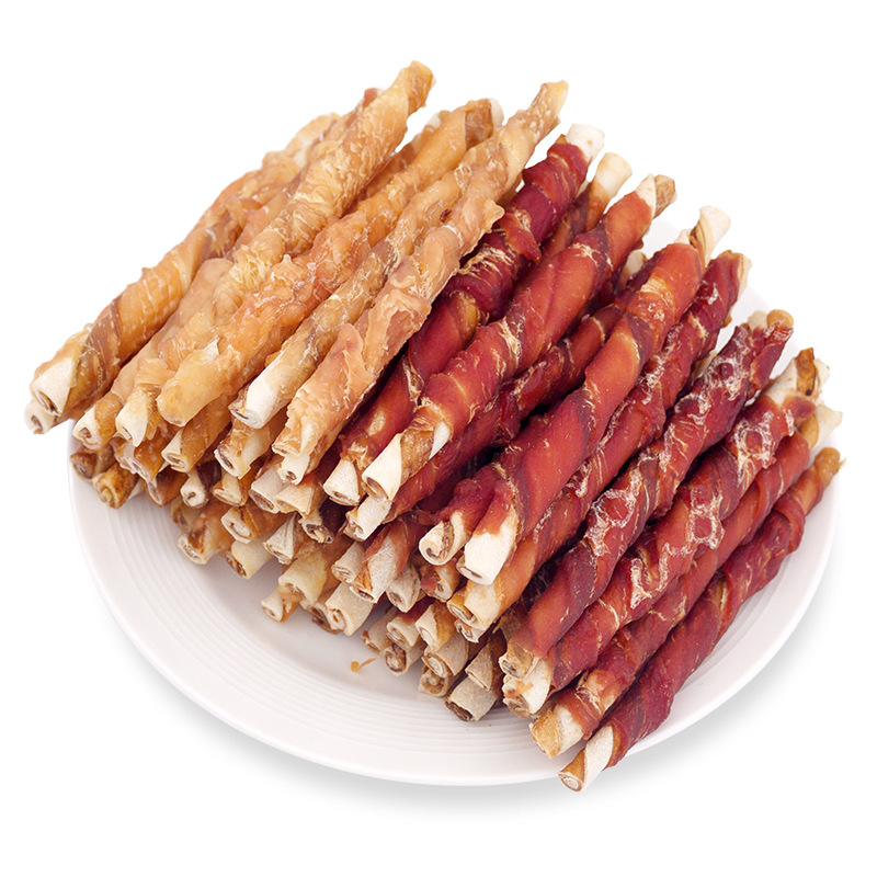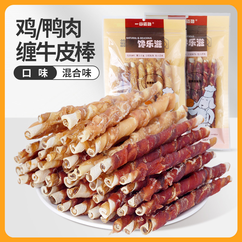 牛皮磨牙棒鸡鸭肉缠绕耐咬洁齿营养训练奖励狗狗零食磨牙