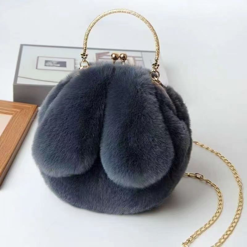 可爱精致兔耳朵毛绒链条包包手机包单肩斜挎包百搭洋气女