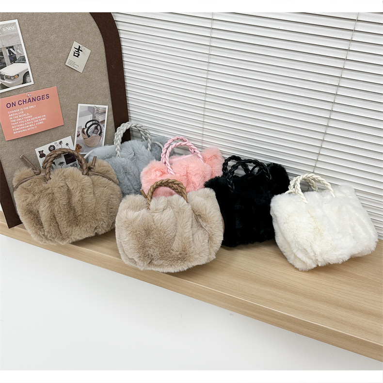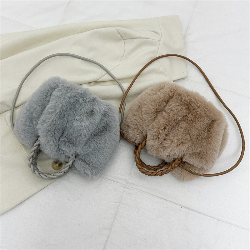 女包挎毛绒柔软云朵女包包百搭款高质感百搭手提抽绳单肩包女