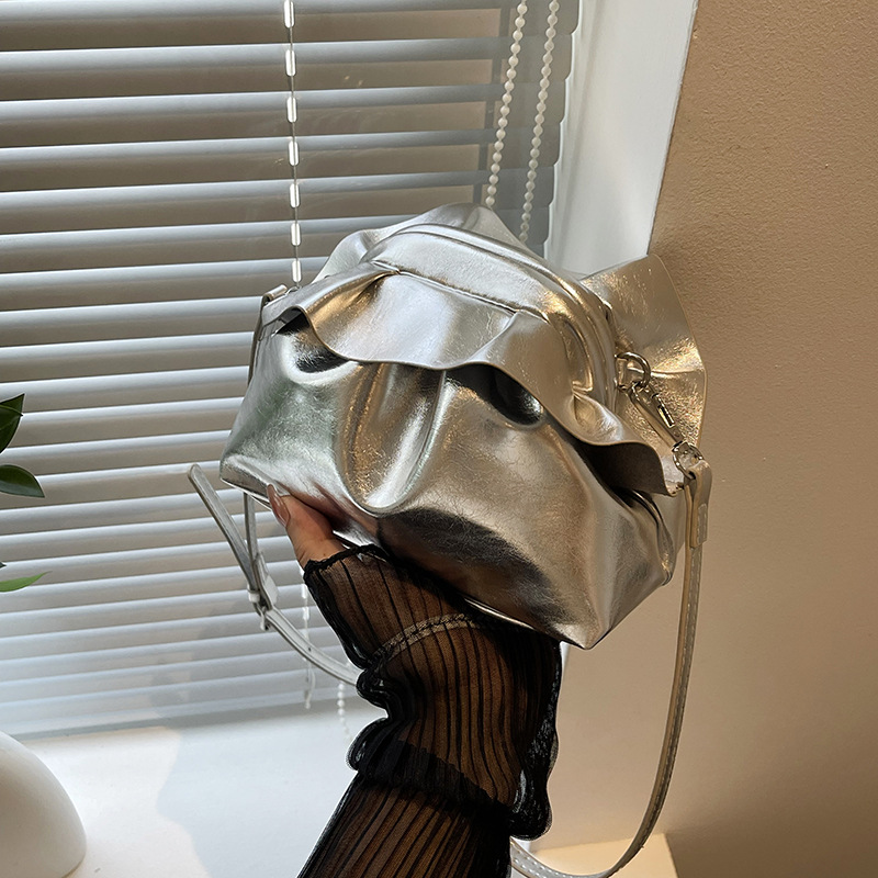 法国小众云朵褶皱夹口斜挎包包女新款流行洋气高级感精致小包
