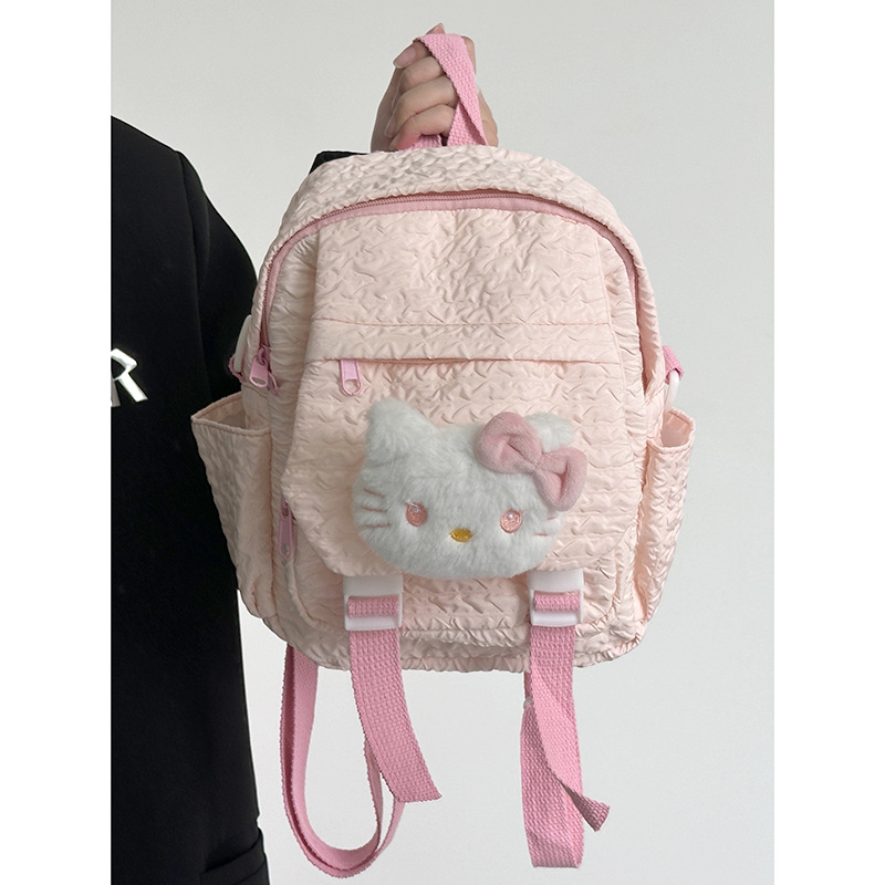 kt猫泡泡格甜妹双肩包新款日系可爱休闲甜美背包褶皱小书包