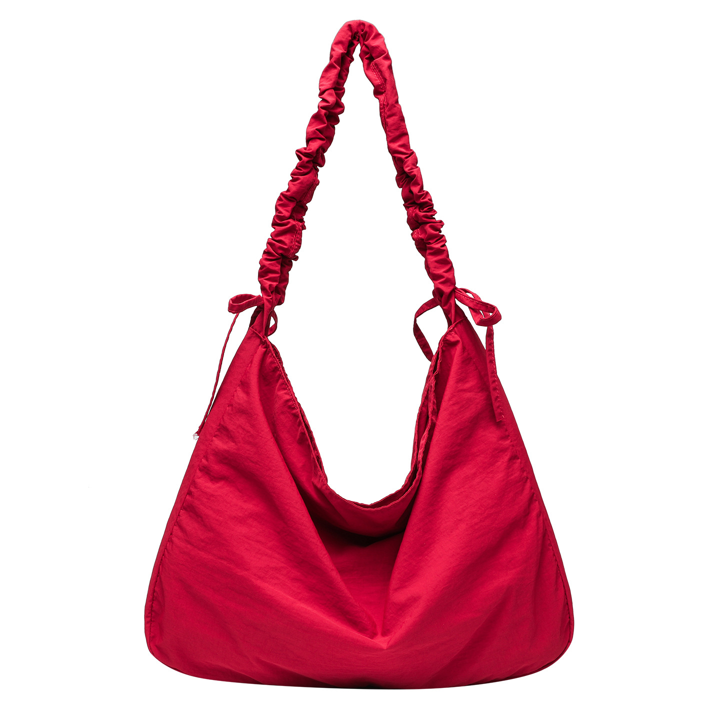褶皱抽绳帆布包慵懒风单肩斜挎包大容量托特包通勤高级感