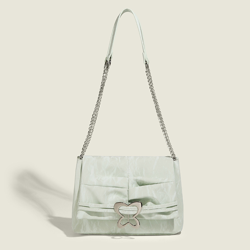新款夏天小众链条单肩斜跨包双肩包蝴蝶褶皱腋下单肩女包