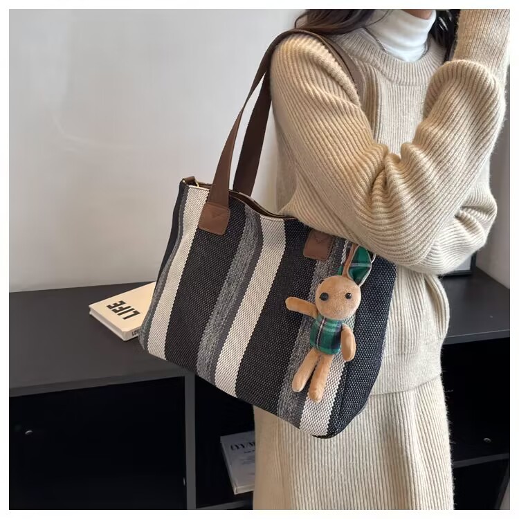潮流单肩包时尚都市大容量帆布质感手提包简约通勤休闲托特包