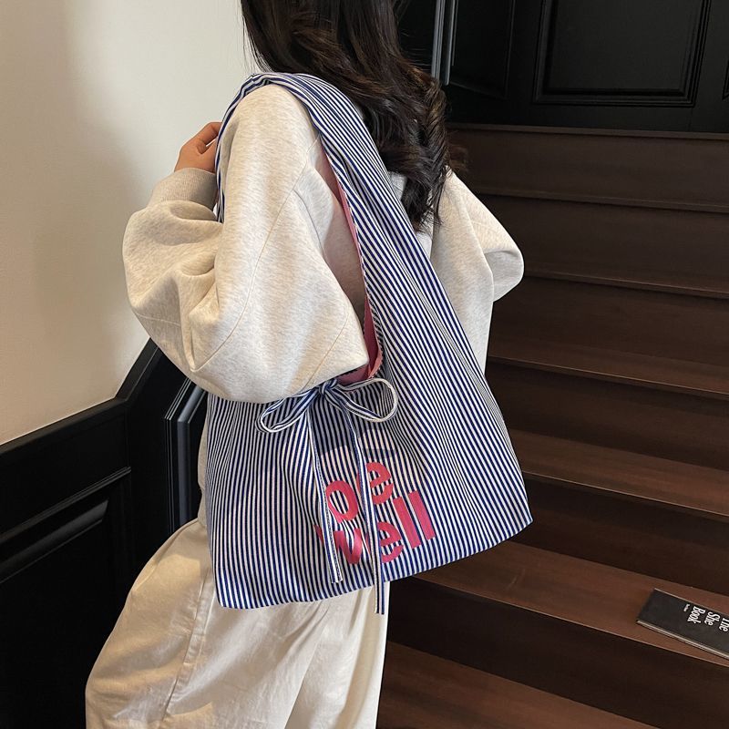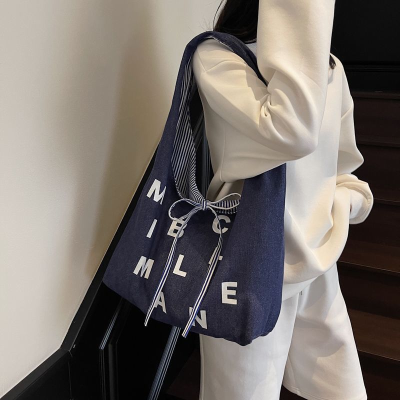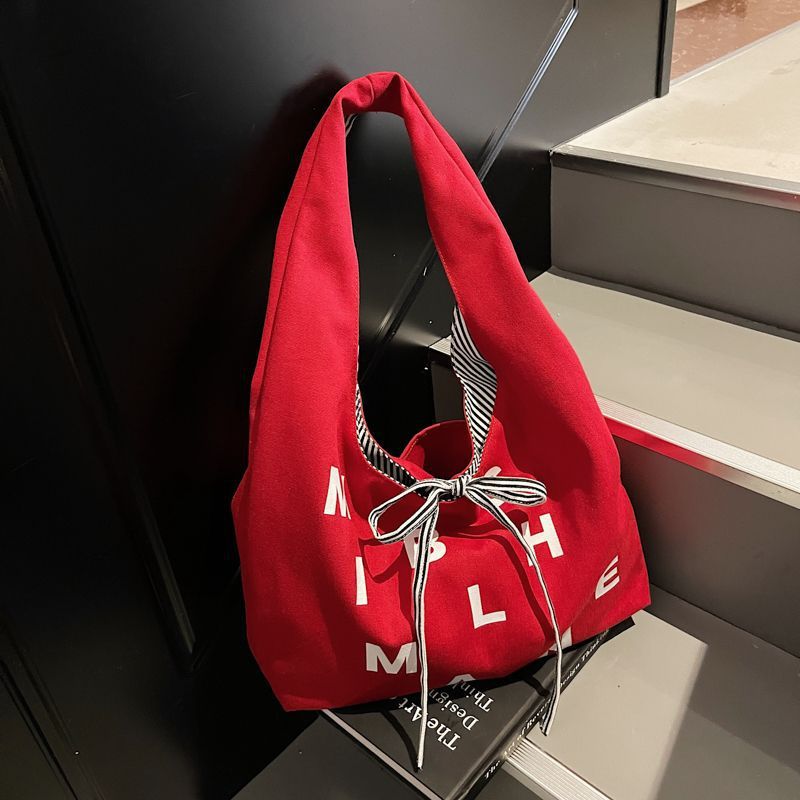 大容量双面帆布包包女2025新款彩色字母蝴蝶结单肩包时尚书包
