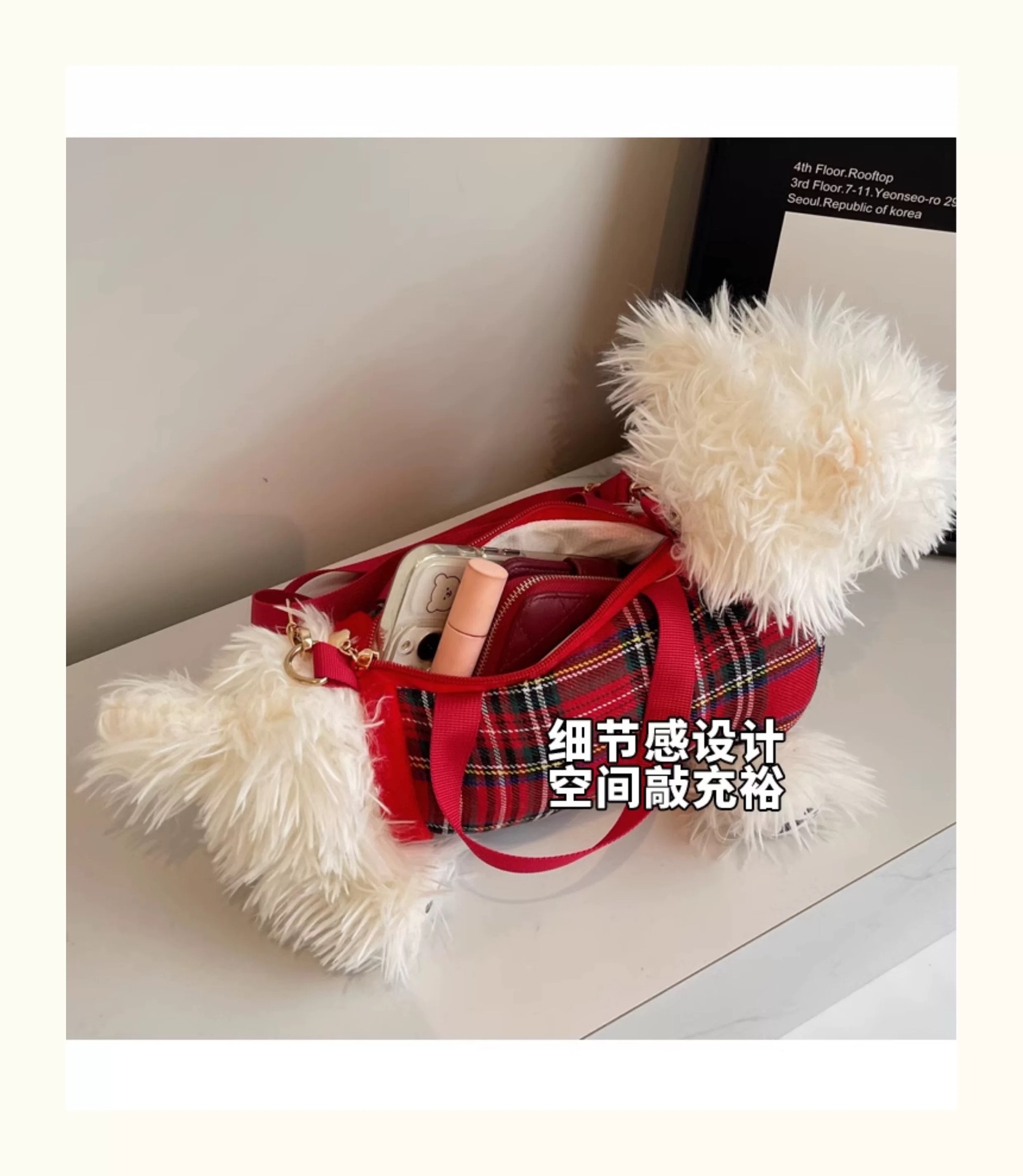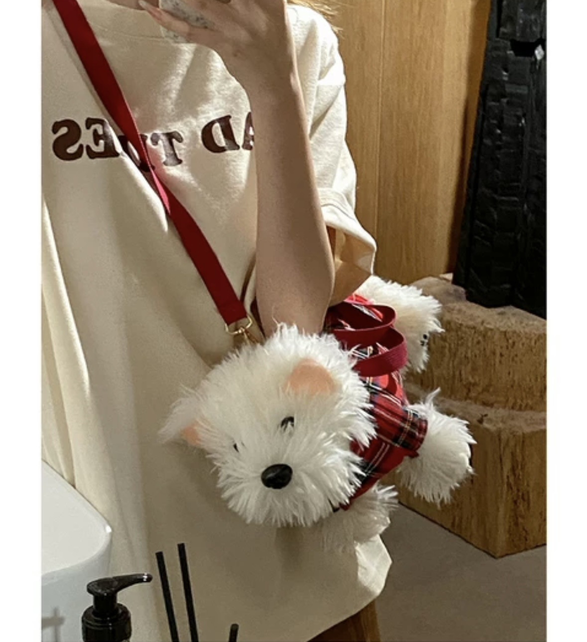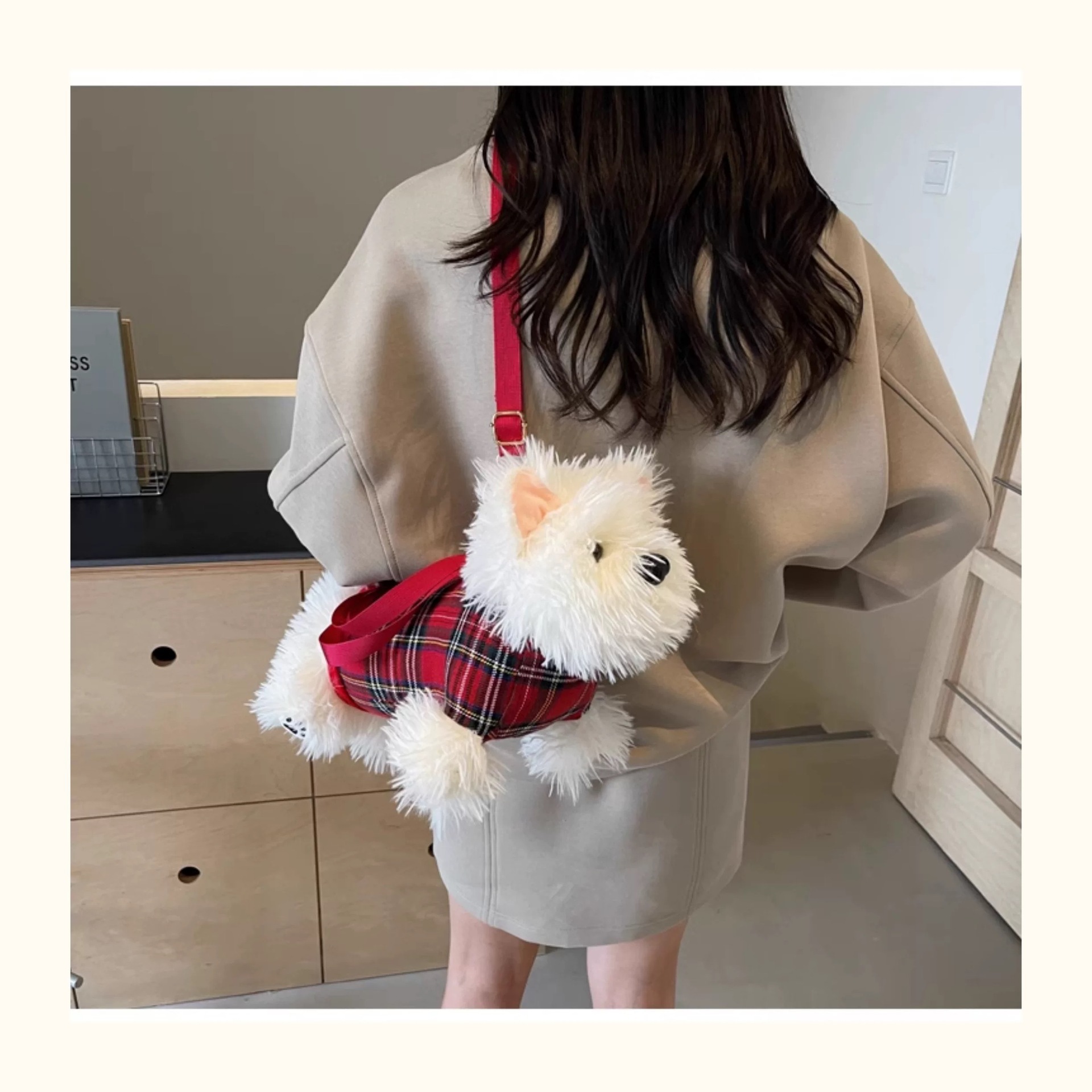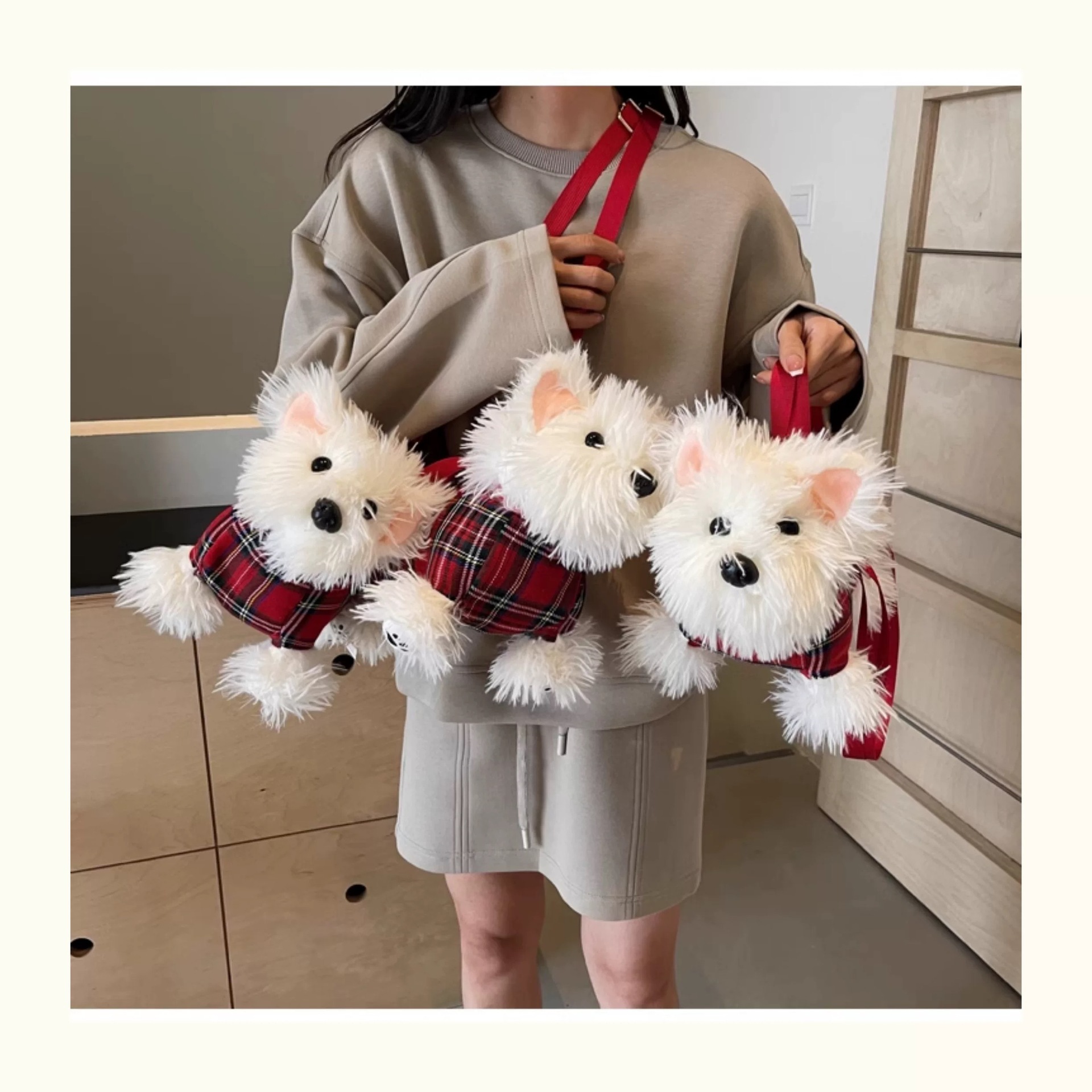 可爱西高地小狗玩偶包卡通毛绒公仔玩偶斜挎单肩手提包