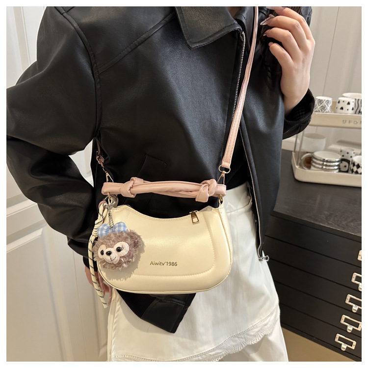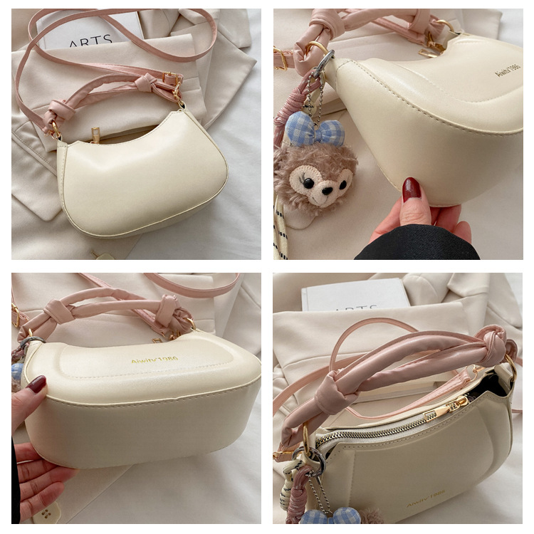 2025流苏大容量托特月牙潮流单肩女包休闲简约斜挎pu复古饺子包包