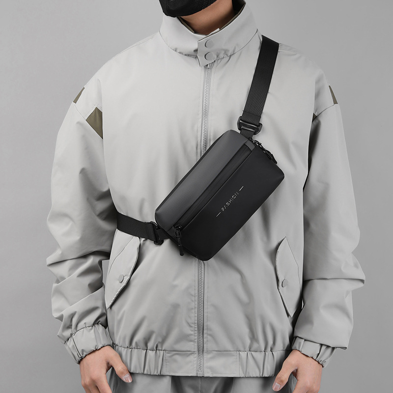 跨境男士胸包潮流简约斜挎包户外旅行腰包欧美复古大容量单肩包