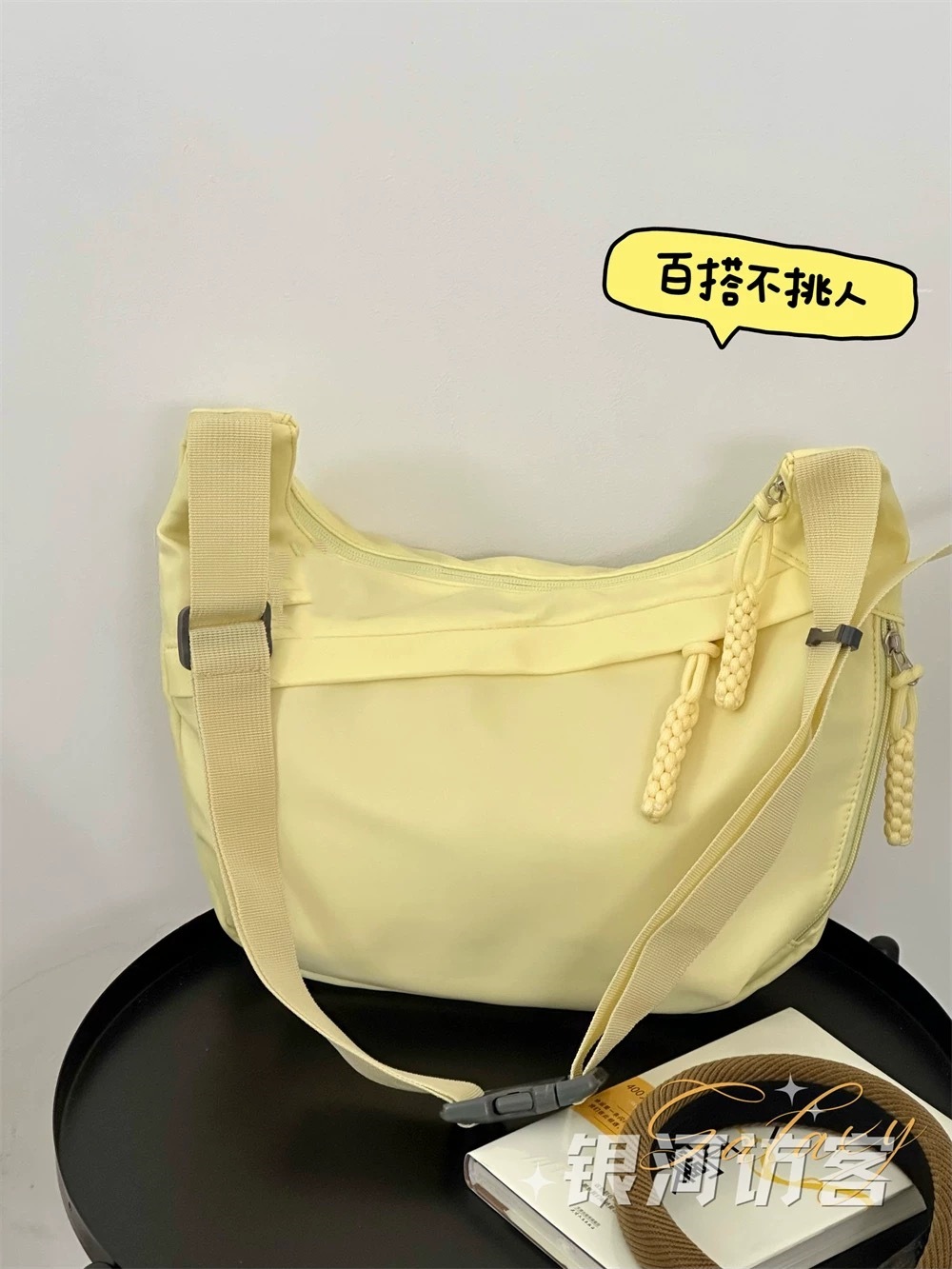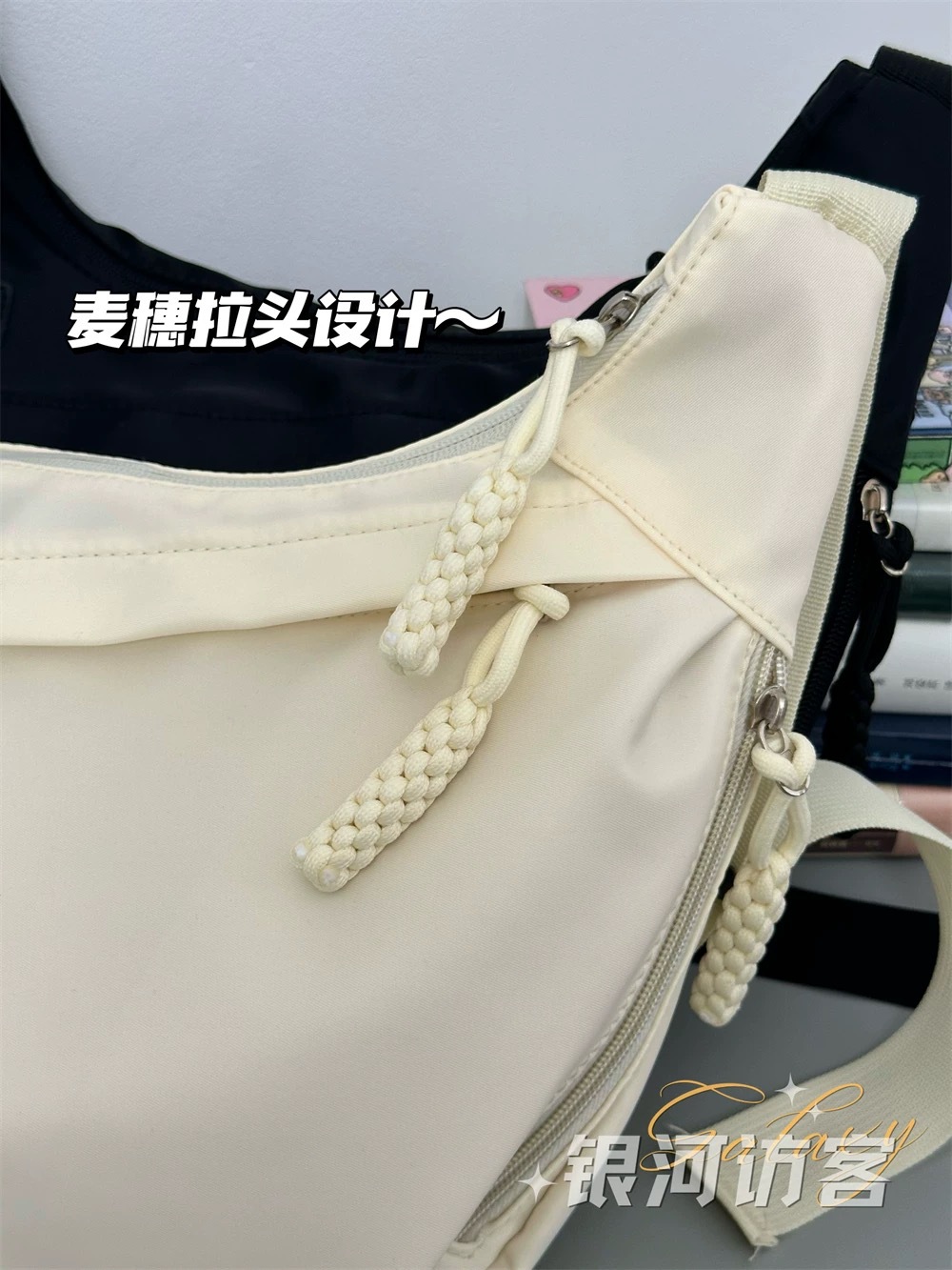 日系饺子包女休闲百搭少女斜挎包纯色上课通勤单肩包