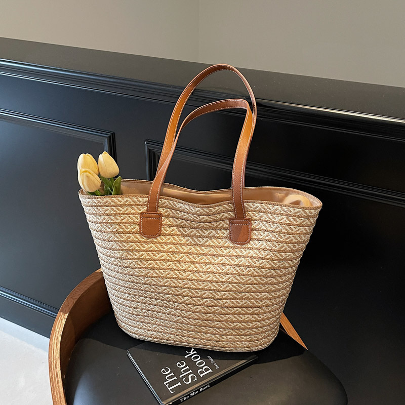 草编包包女大容量2025新款度假沙滩草包编织菜篮子通勤托特水桶包