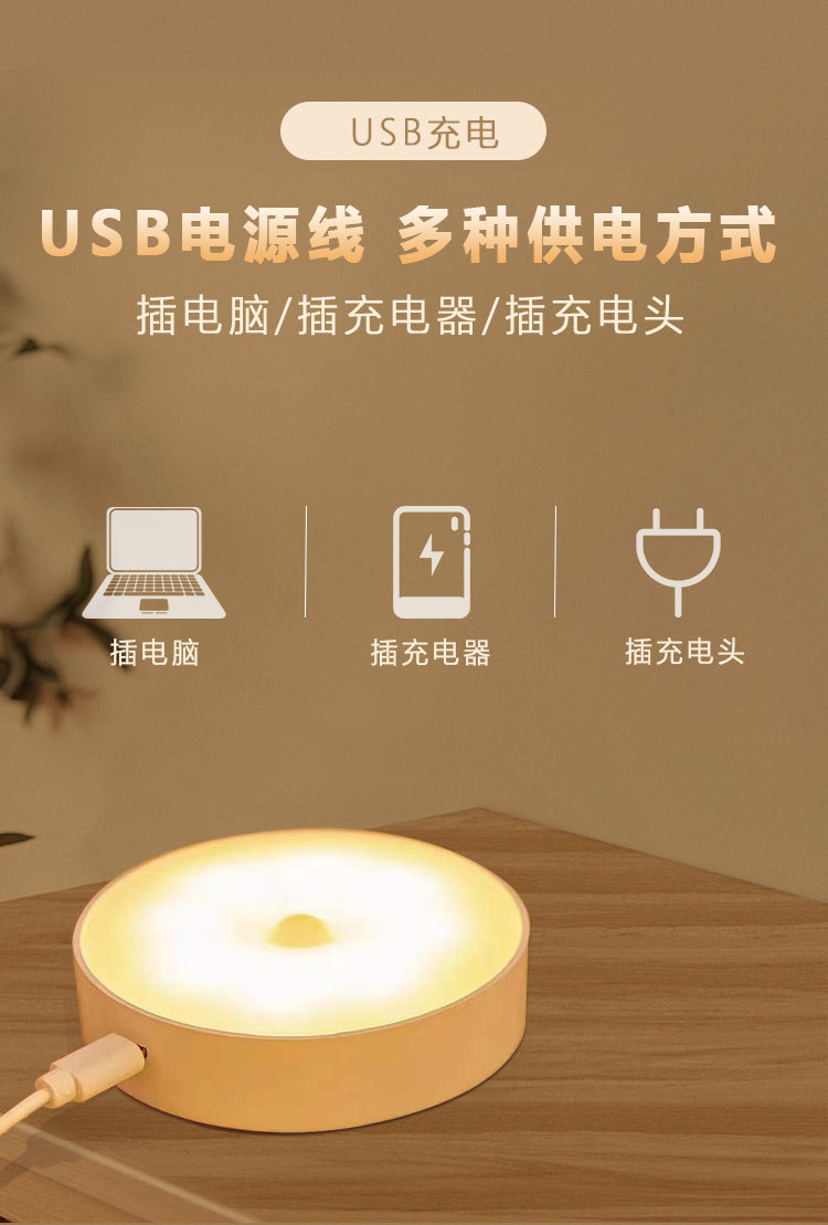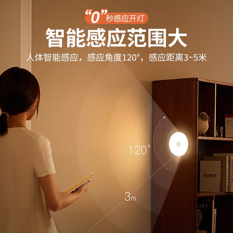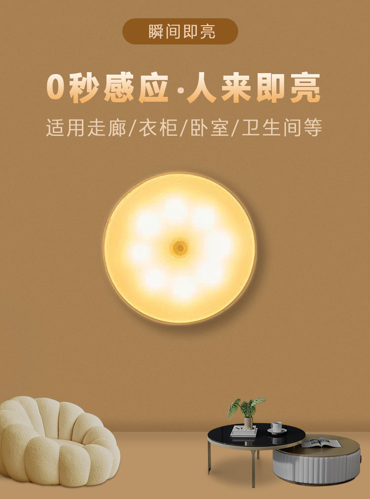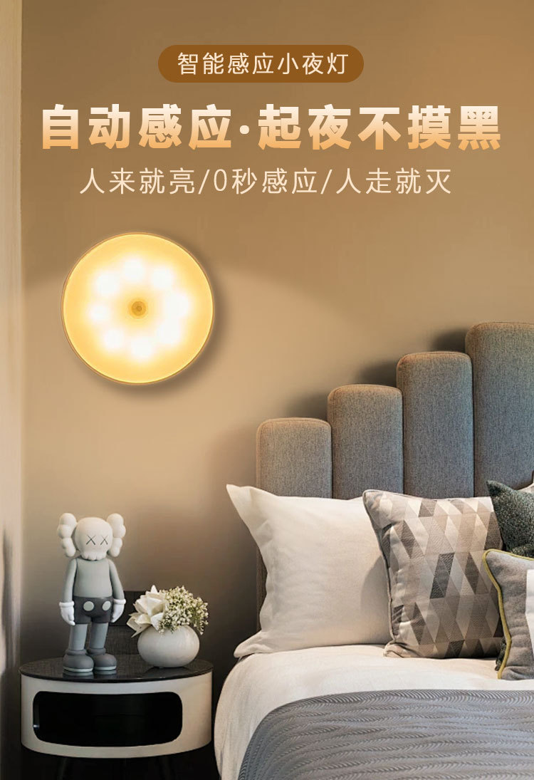 人体自动感应灯小夜灯卧室床头充电人来即亮厕所楼梯磁吸壁灯