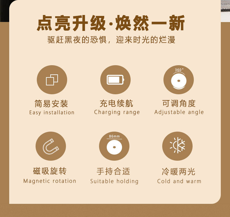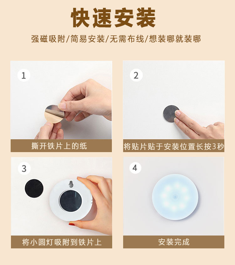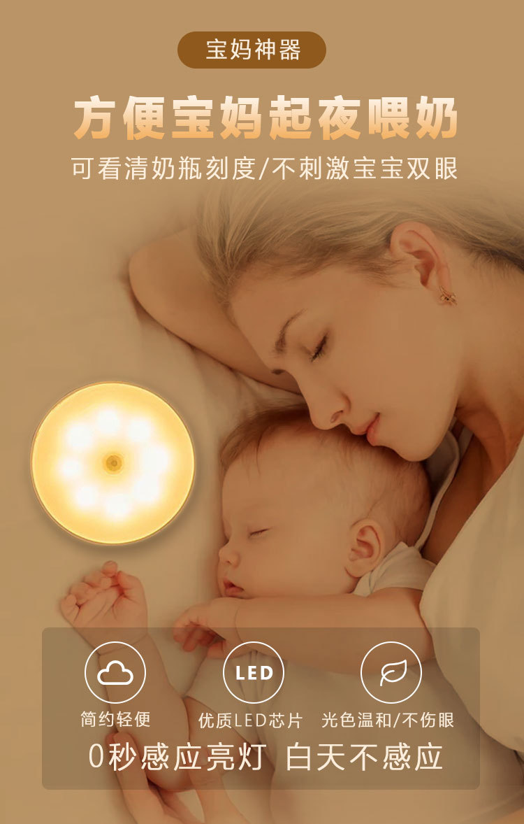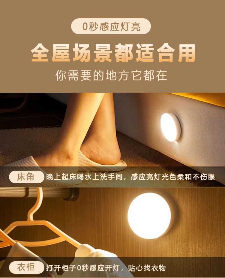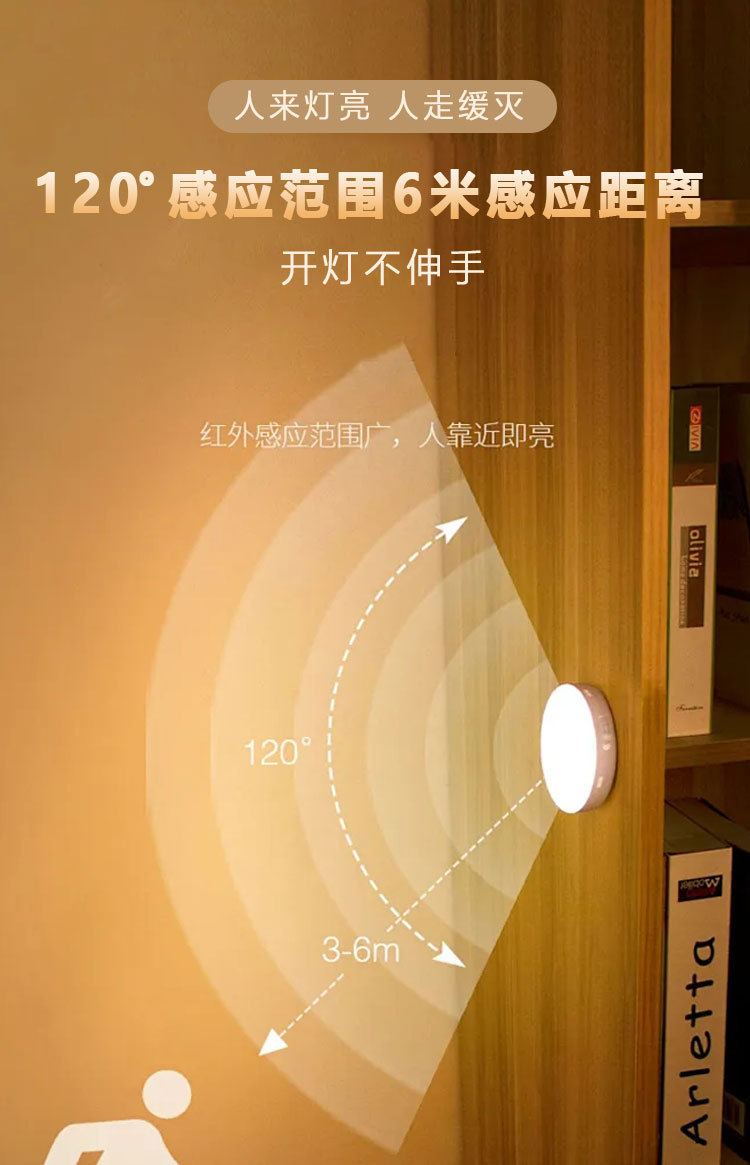 人体自动感应灯小夜灯卧室床头充电人来即亮厕所楼梯磁吸壁灯