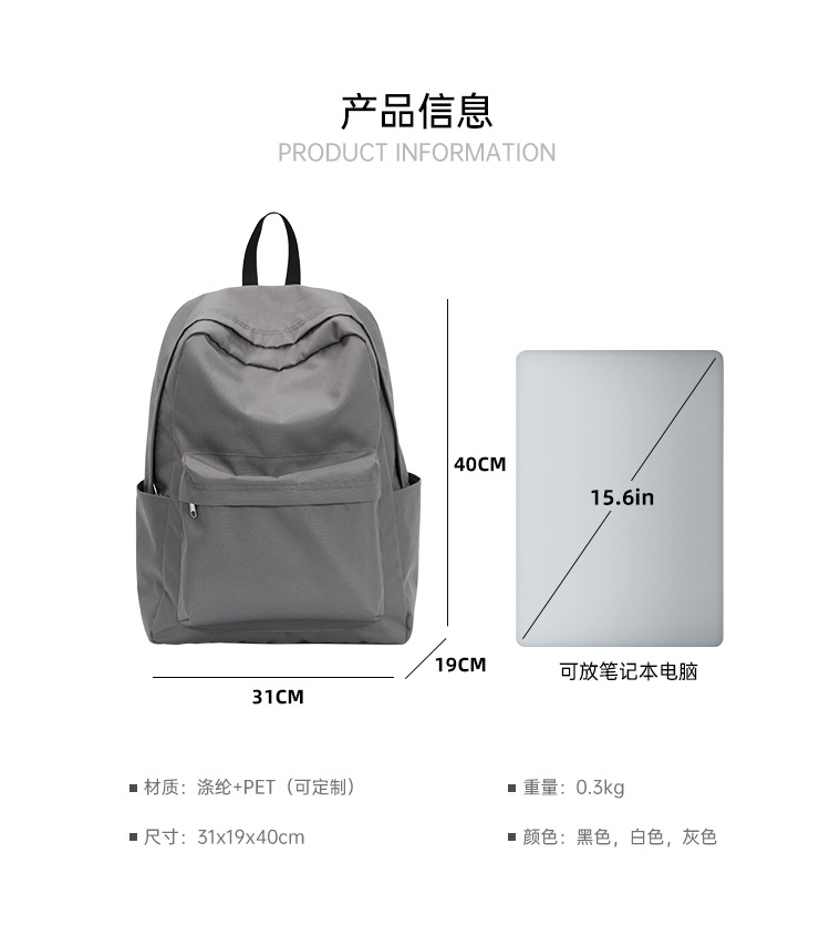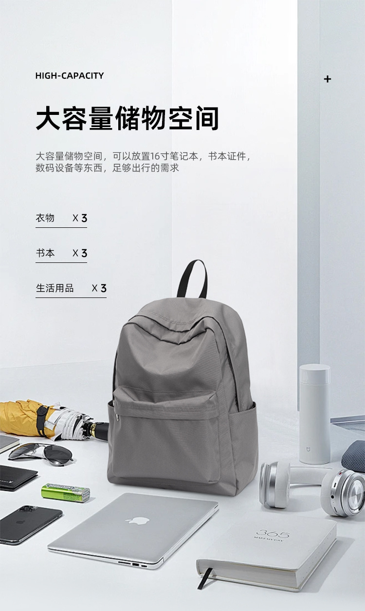 大容量双肩包休闲风时尚女生灰色韩版简约大书包出游背包