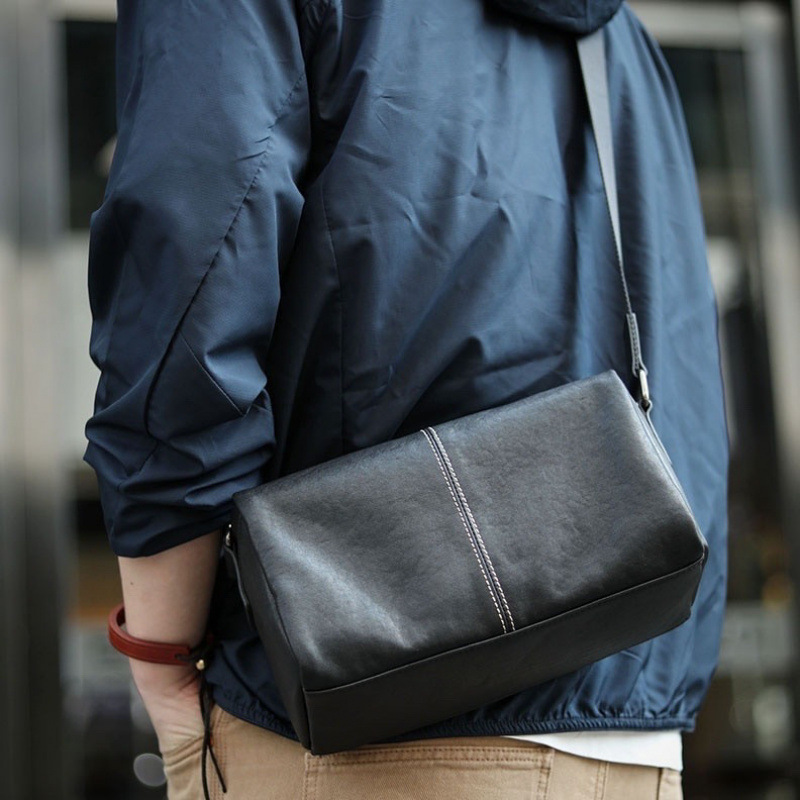 男士通勤单肩斜挎包植鞣软皮小包简约男包高级枕头男士商务包