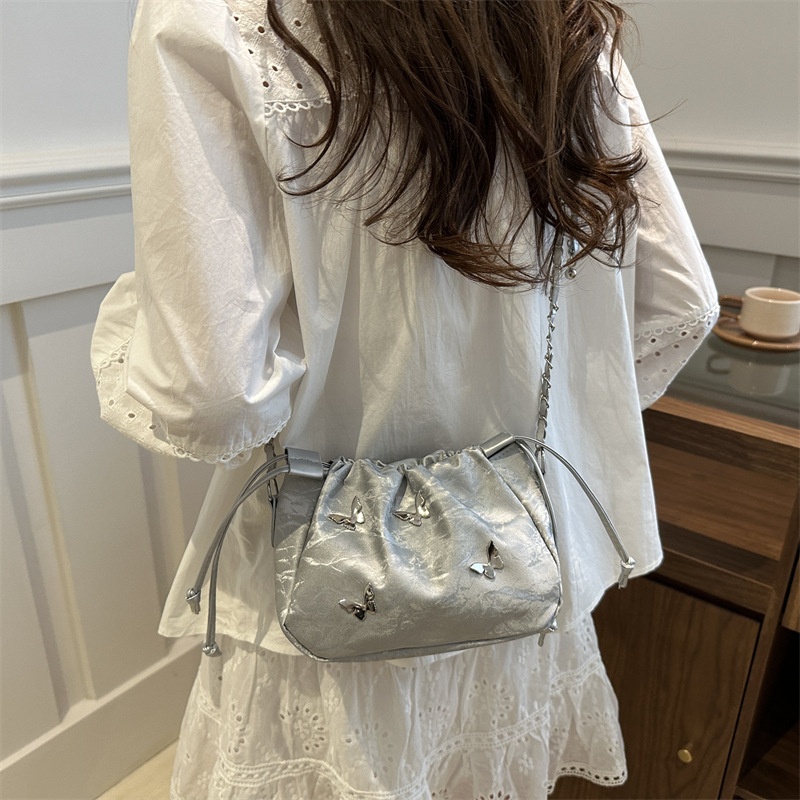 银色包包女夏天新款设计感小众链条单肩斜挎包爆款褶皱云朵包