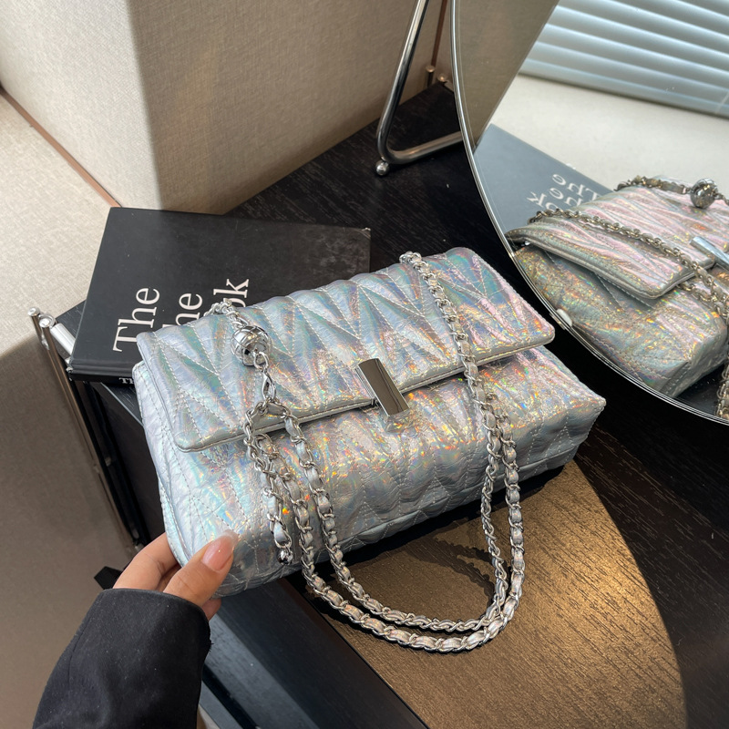 绣线褶皱小包包女夏季新款单肩腋下包复古洋气链条斜挎小方包