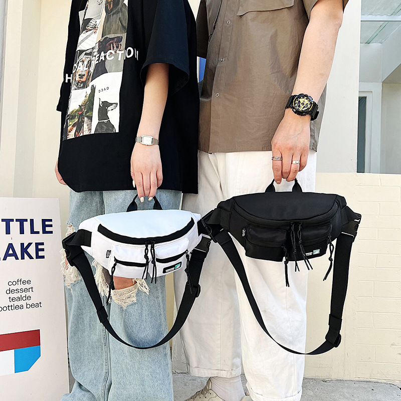 日系百搭胸包男士休闲运动腰包工装学生情侣大容量斜挎包包女