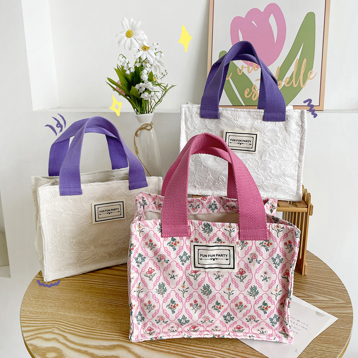 野餐碎花饭盒袋百搭手拎小方包蕾丝收纳包妈咪包