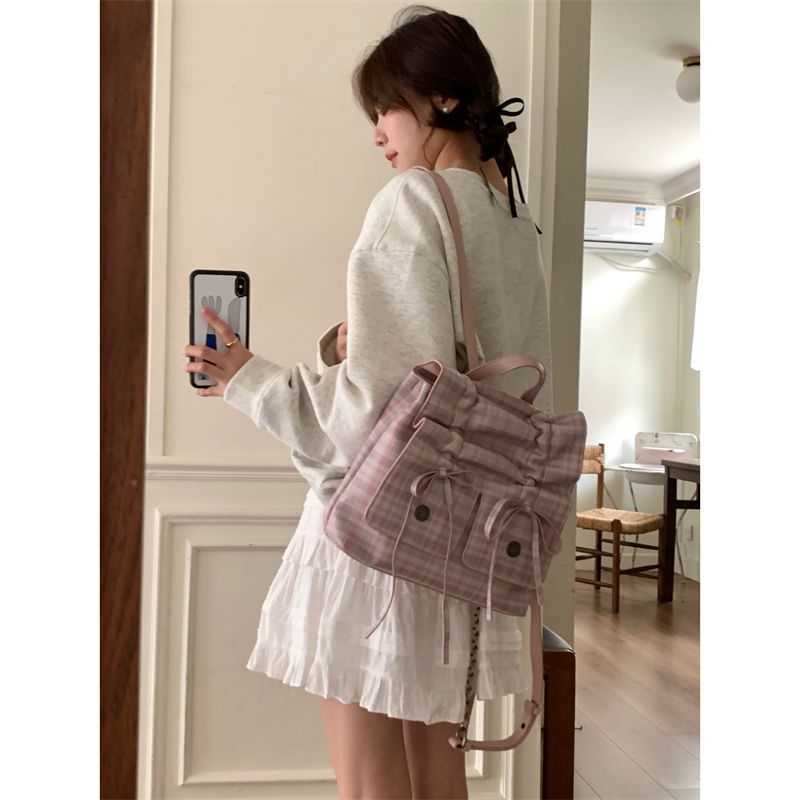 新款芭蕾风包包女大容量双肩包小众休闲背包褶皱蝴蝶结通勤包