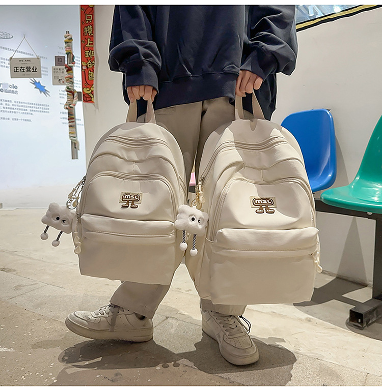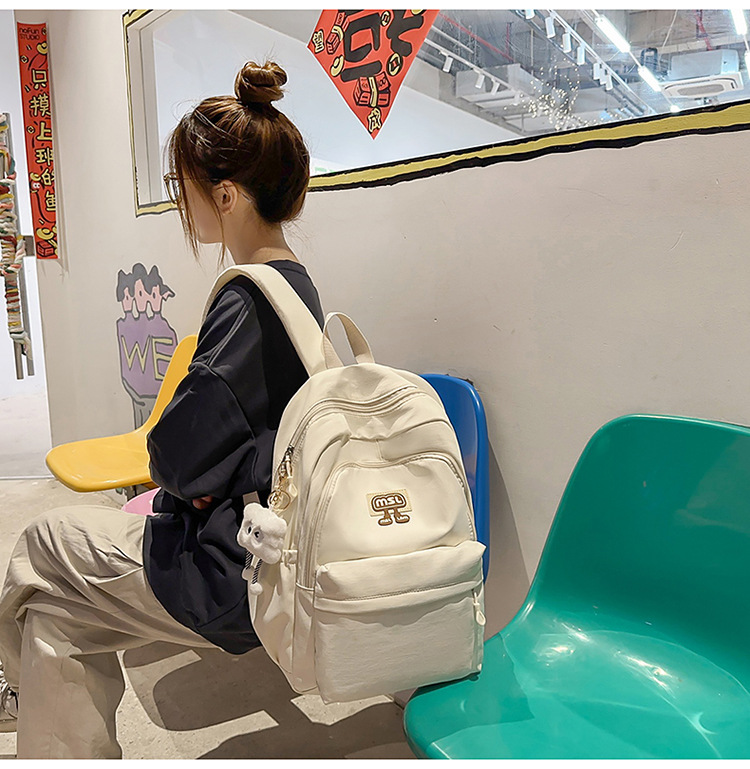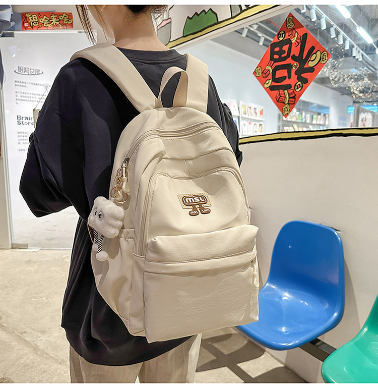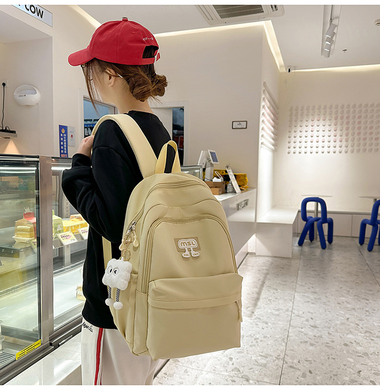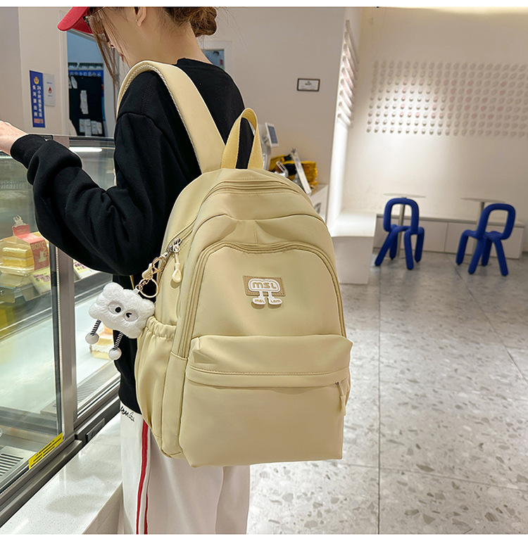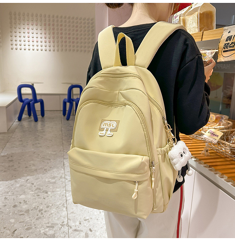 奶黄双肩包女 简约百搭大容量高中初中生书包电脑背包