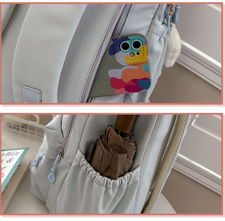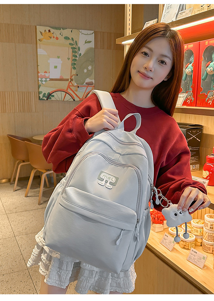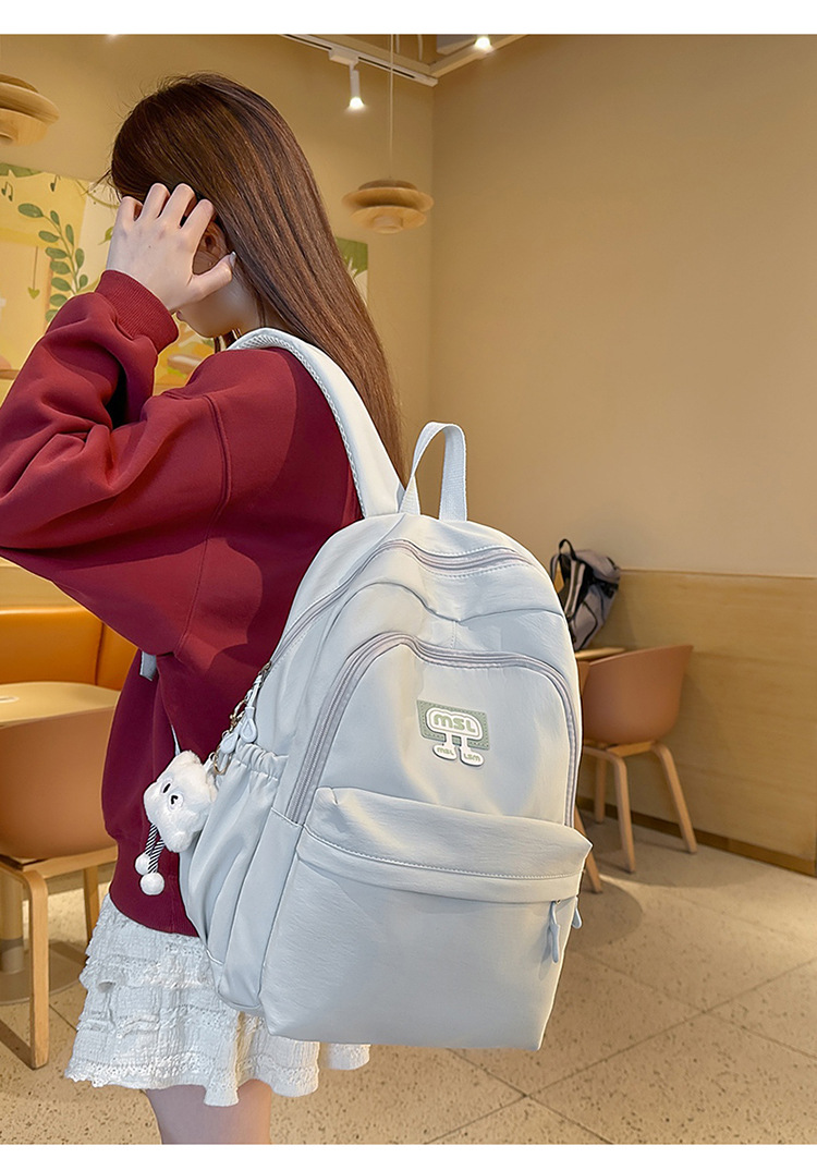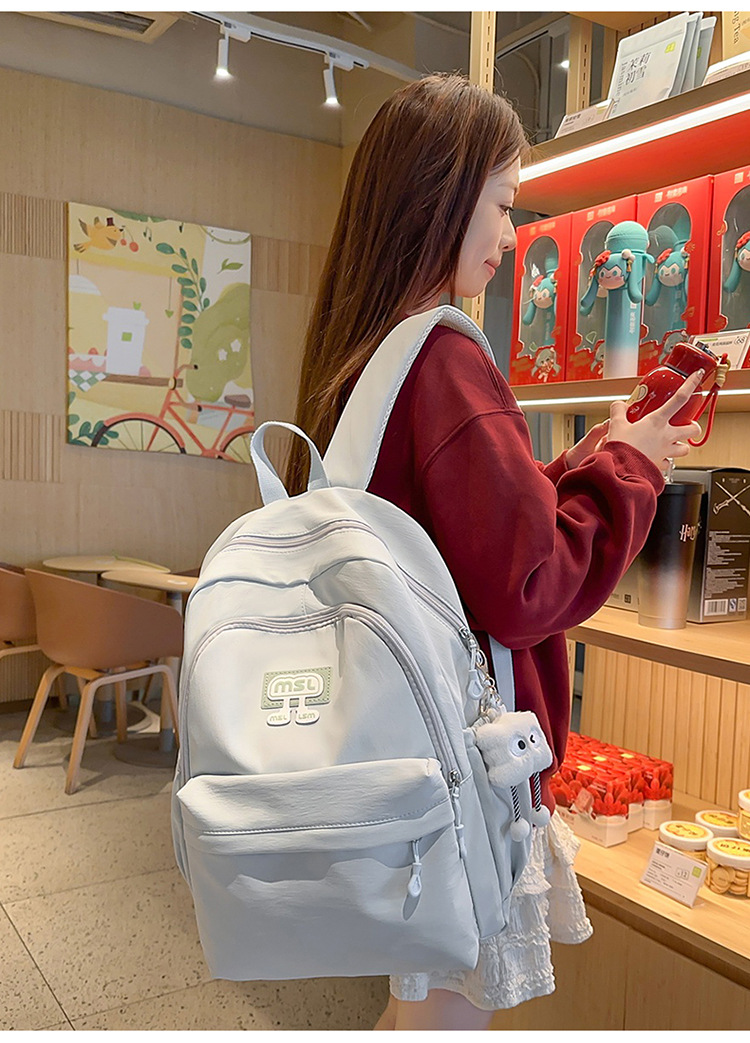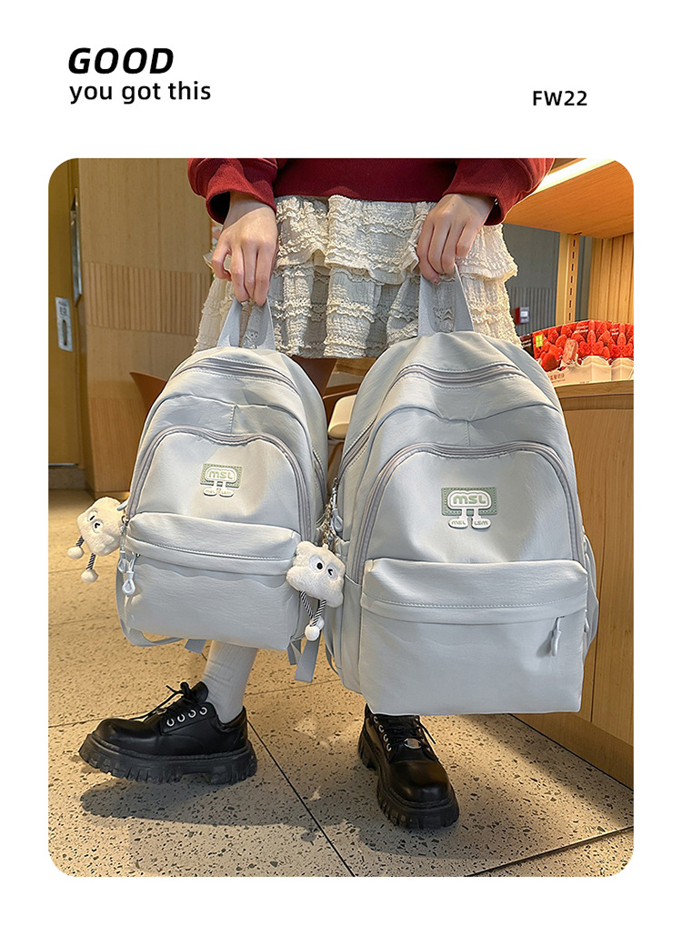 奶黄双肩包女 简约百搭大容量高中初中生书包电脑背包