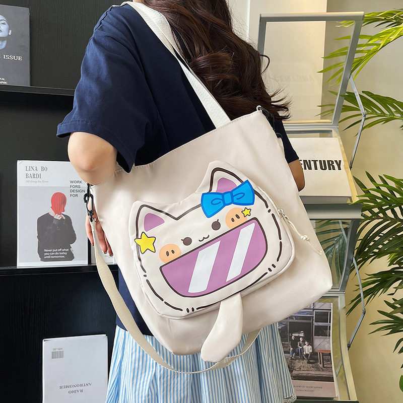 可爱猫咪拼接帆布包新款韩系ins少女大容量背包大学生单肩斜挎包