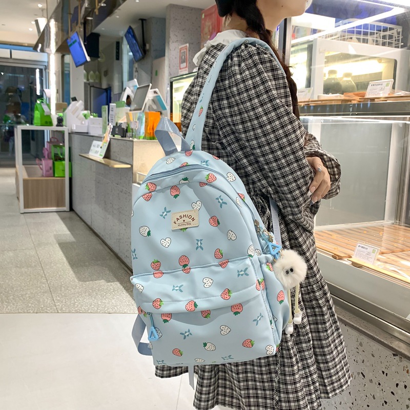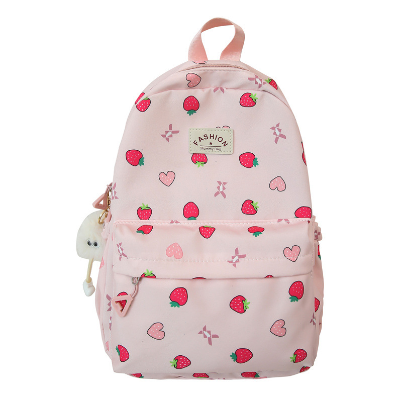 初中生书包女休闲草莓印花校园女生小双肩包旅行小背包女