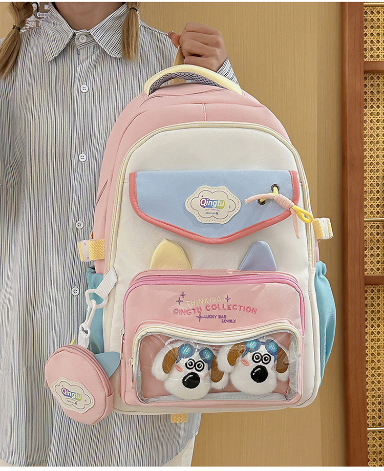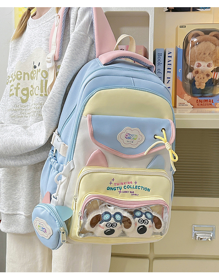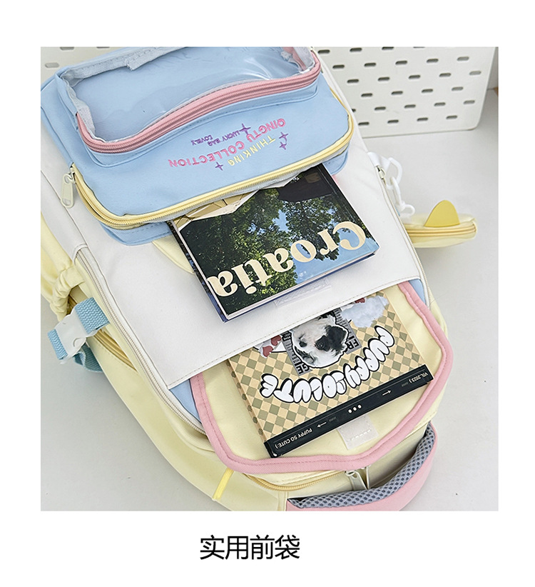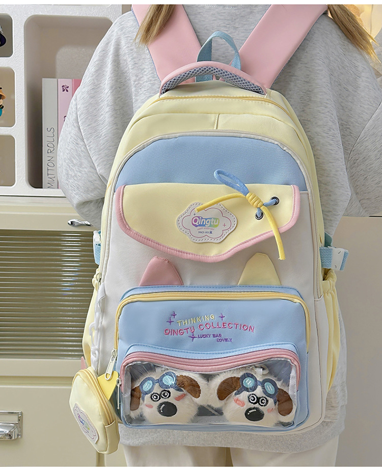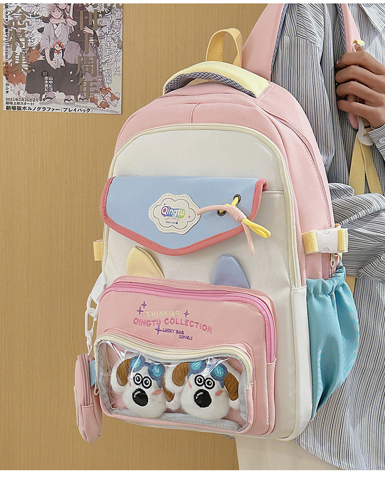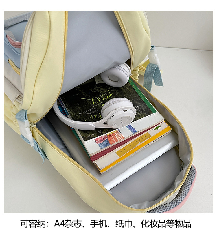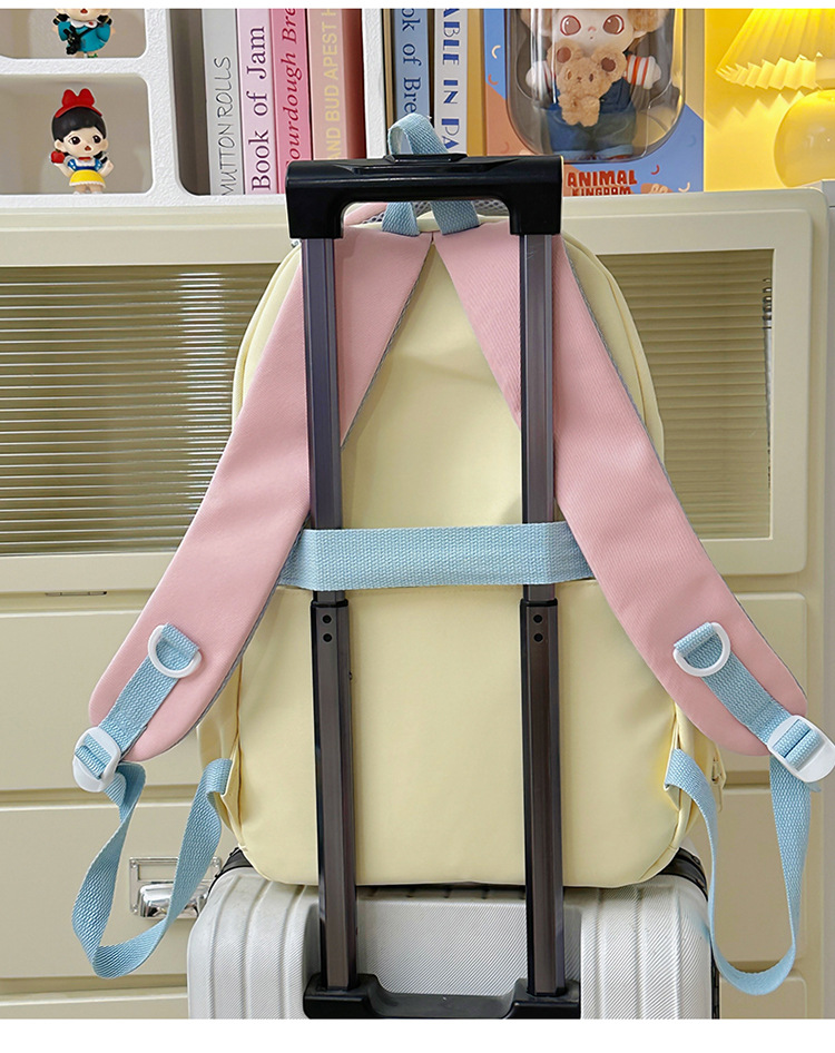 撞色百搭书包女韩版原宿校园初中高中生双肩包大休闲背包