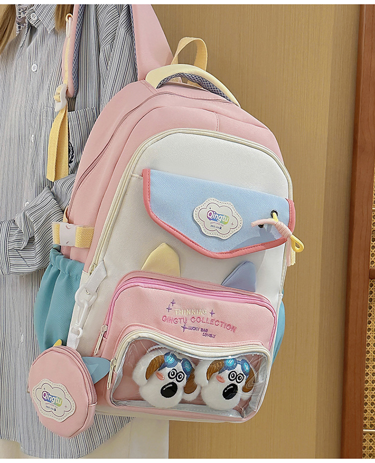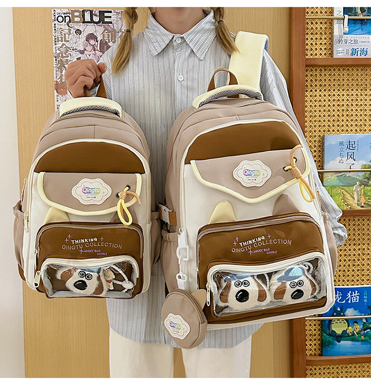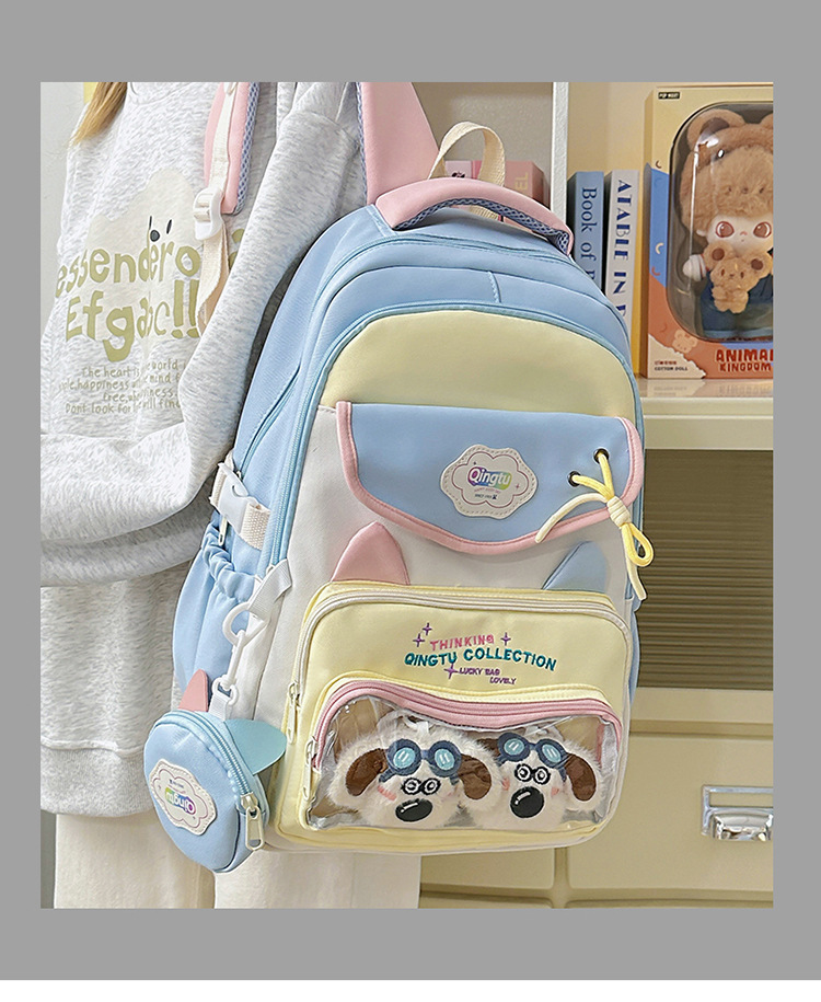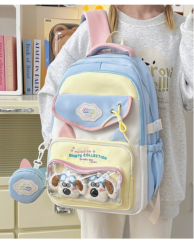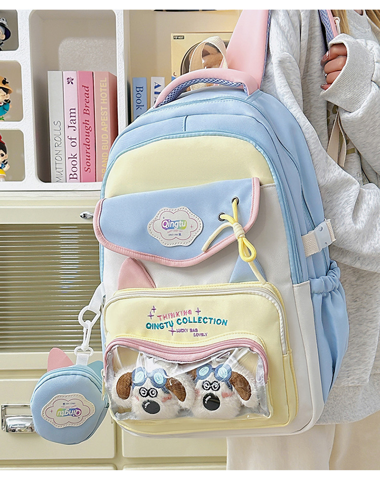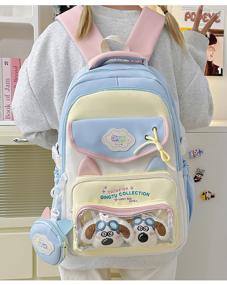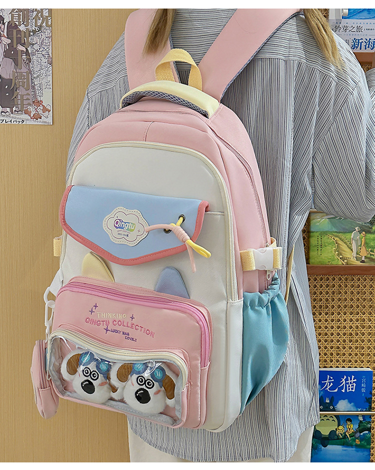 撞色百搭书包女韩版原宿校园初中高中生双肩包大休闲背包