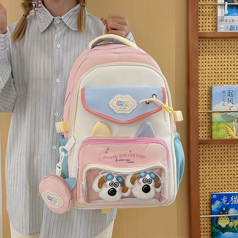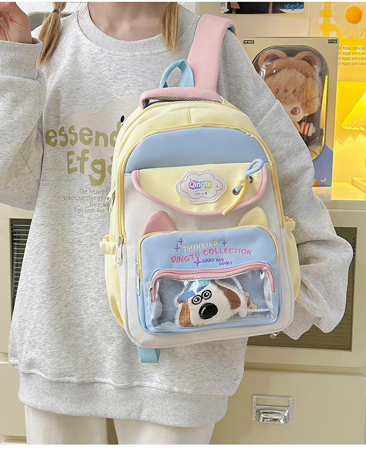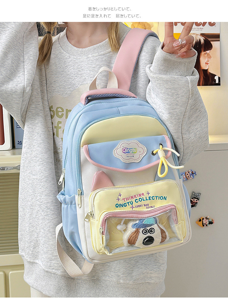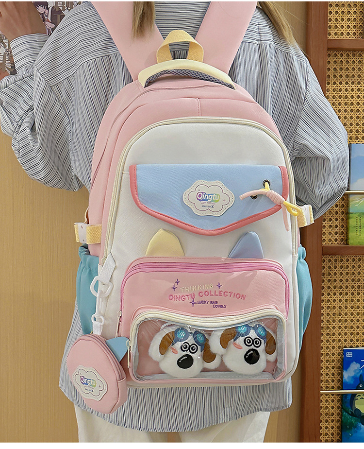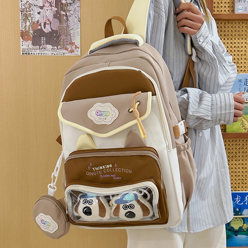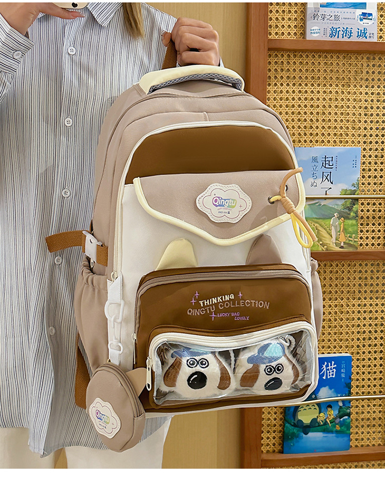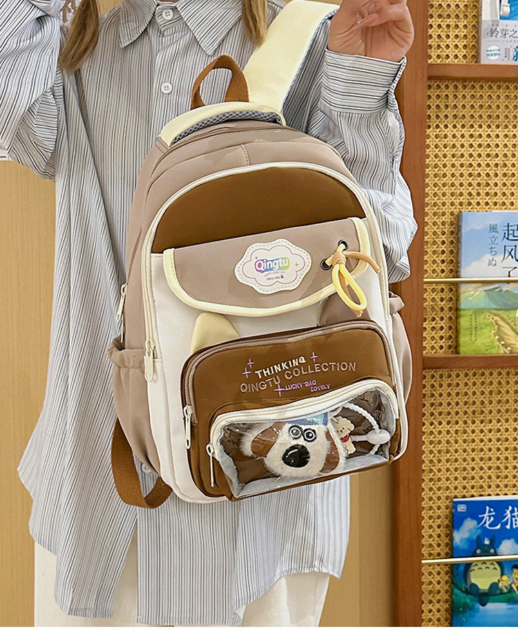 撞色百搭书包女韩版原宿校园初中高中生双肩包大休闲背包