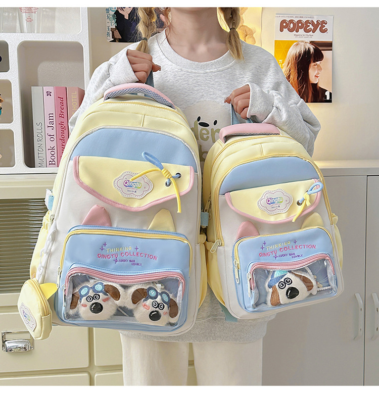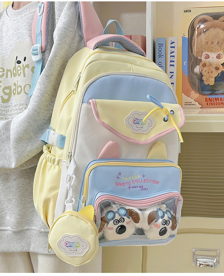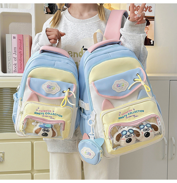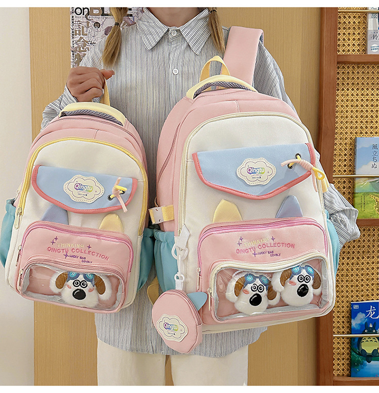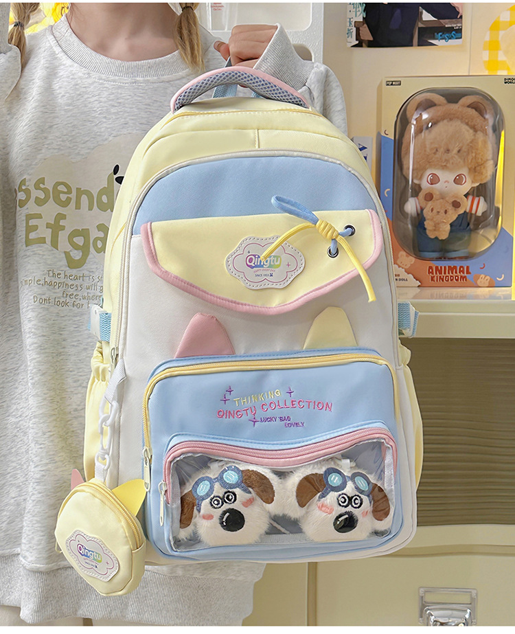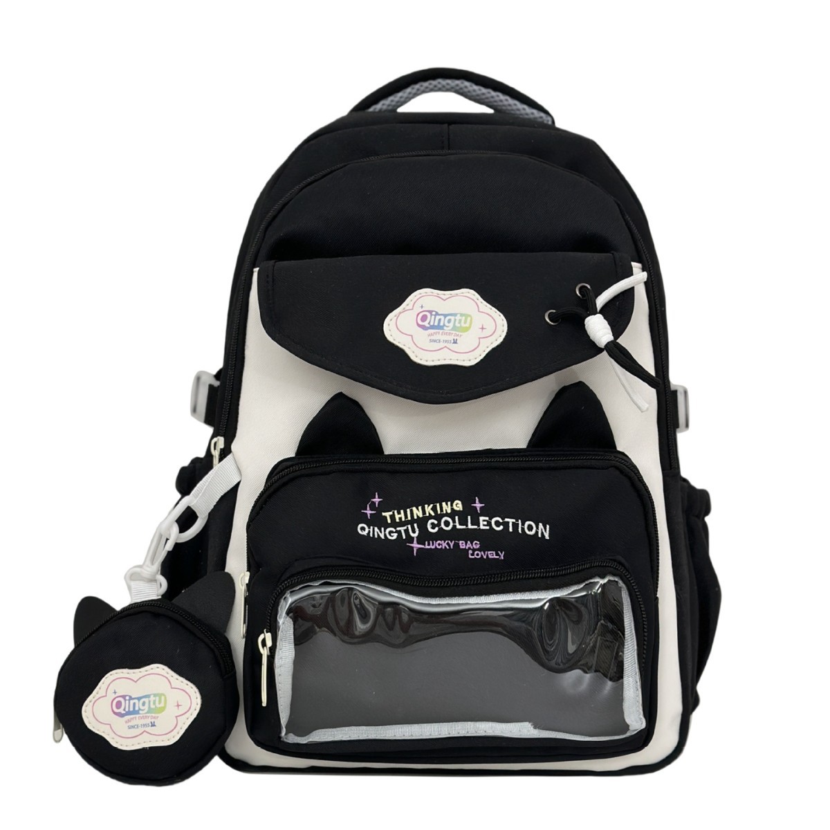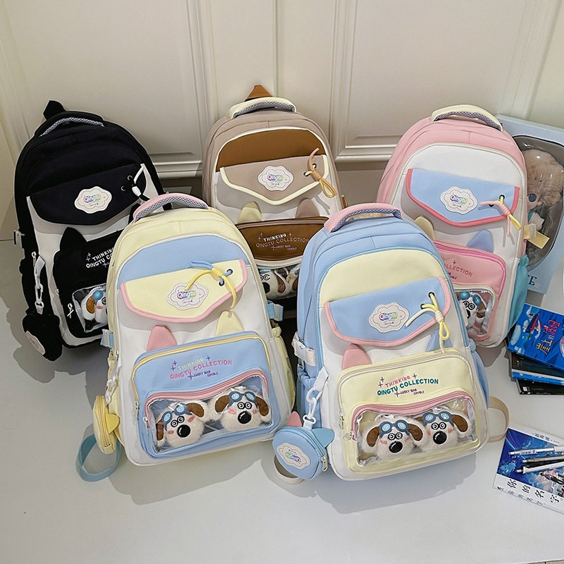 撞色百搭书包女韩版原宿校园初中高中生双肩包大休闲背包