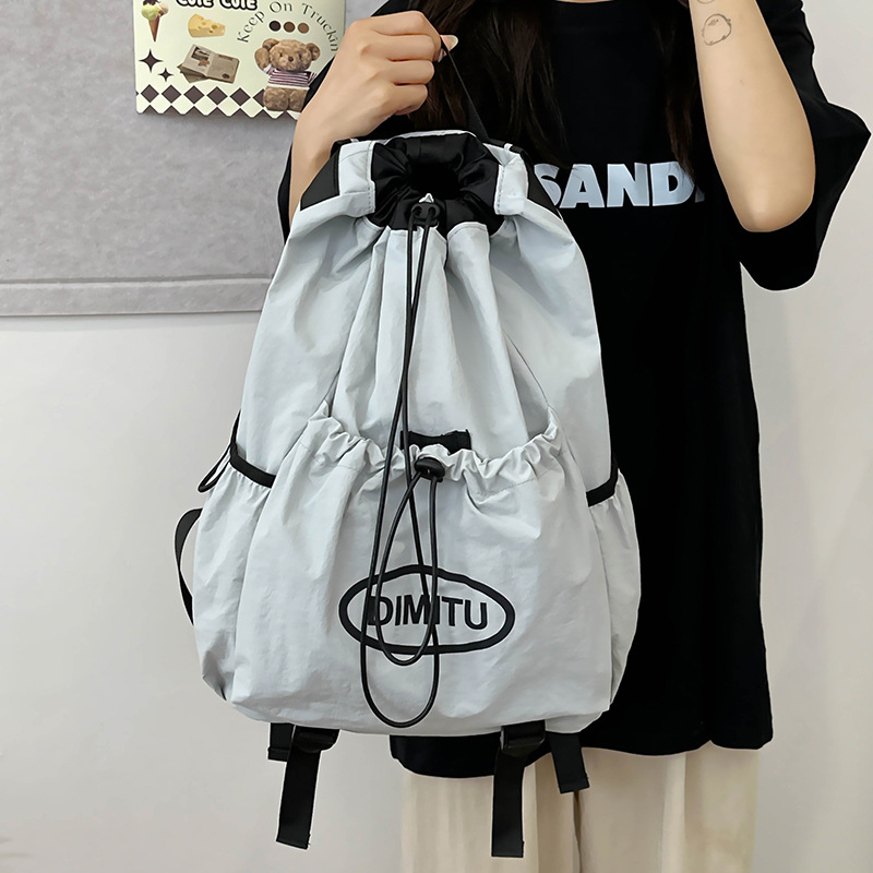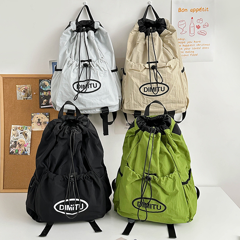 户外登山徒步运动轻便抽绳双肩包束口包大上课包补课包女