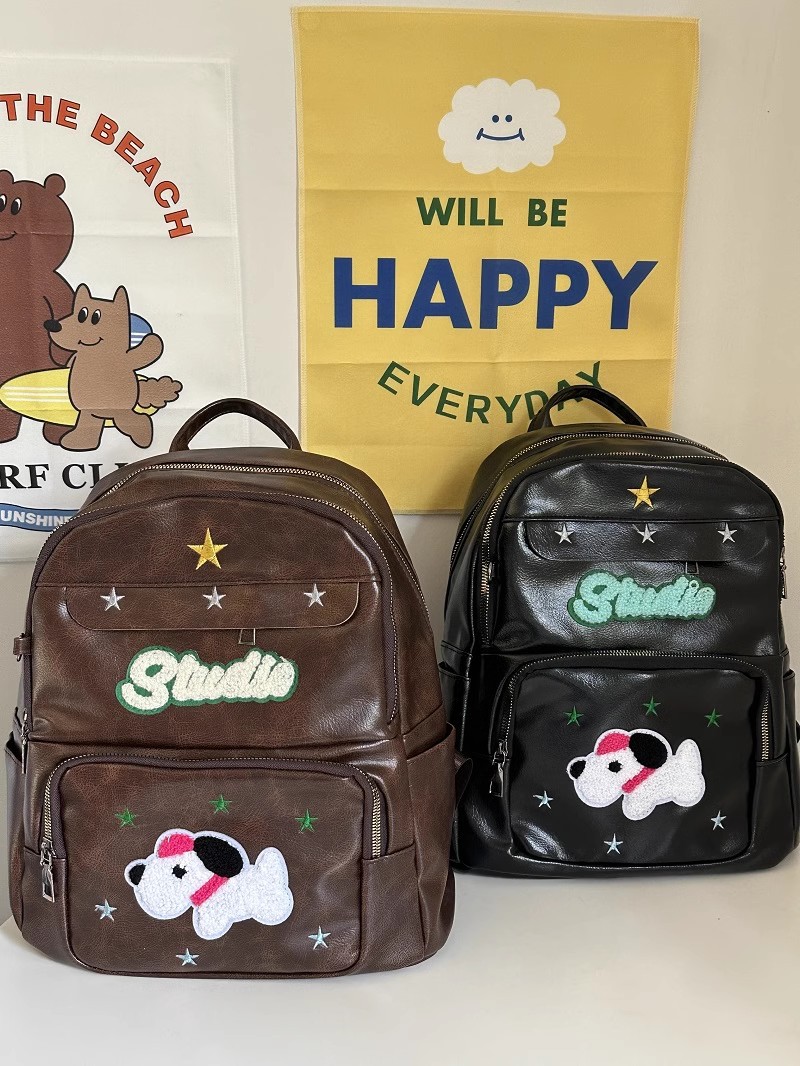 高颜值星星美式复古双肩包新款可爱小狗怀旧书包学生上课背包
