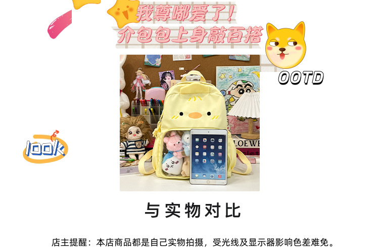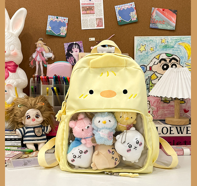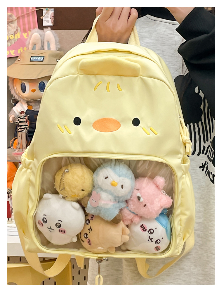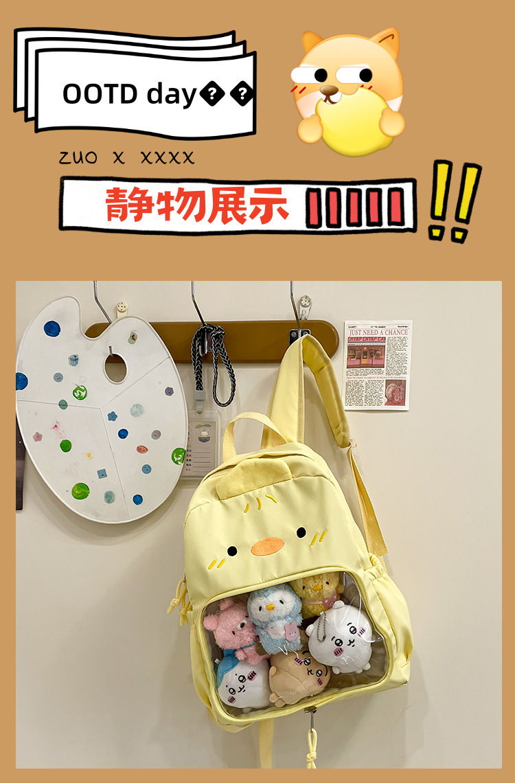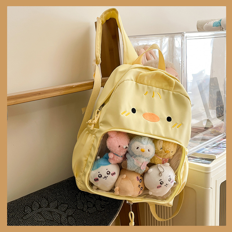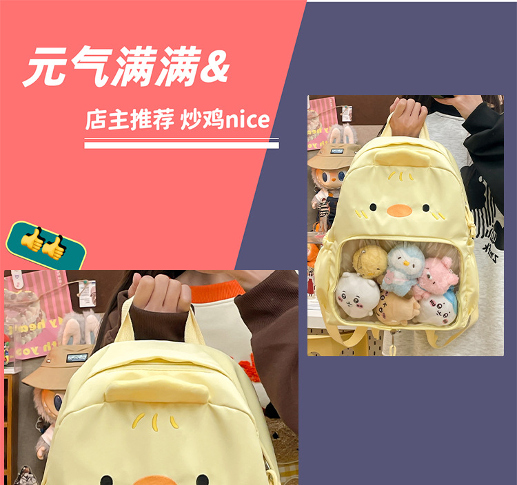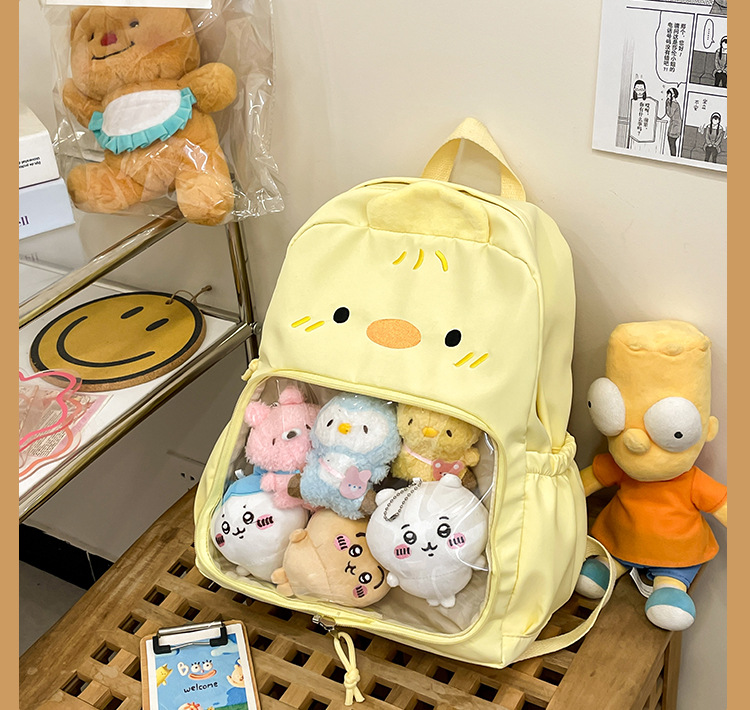 书包新款卡通休闲双肩包可爱小黄鸭书包透明