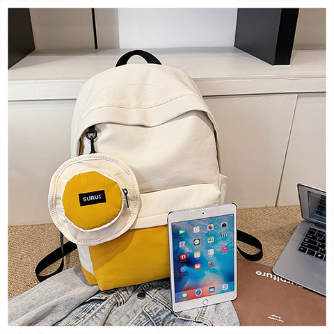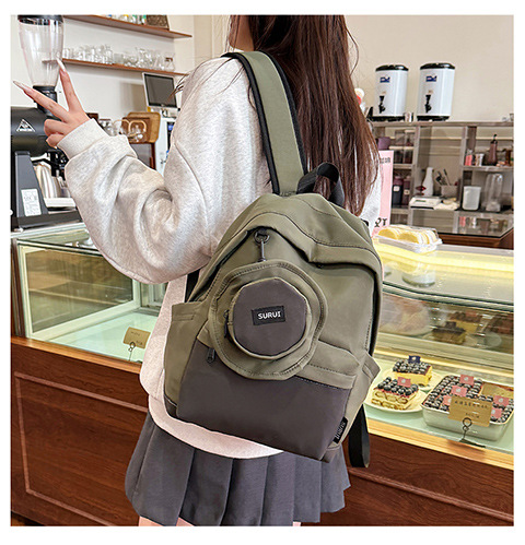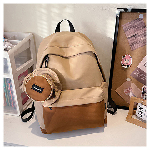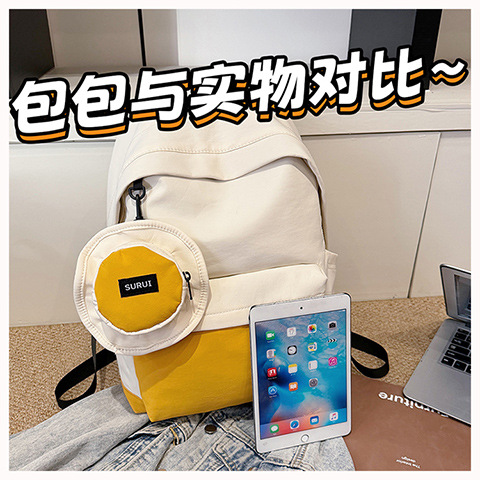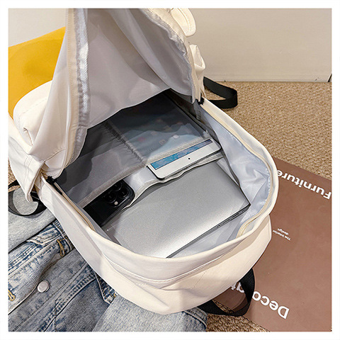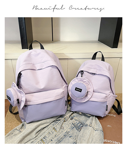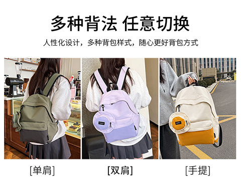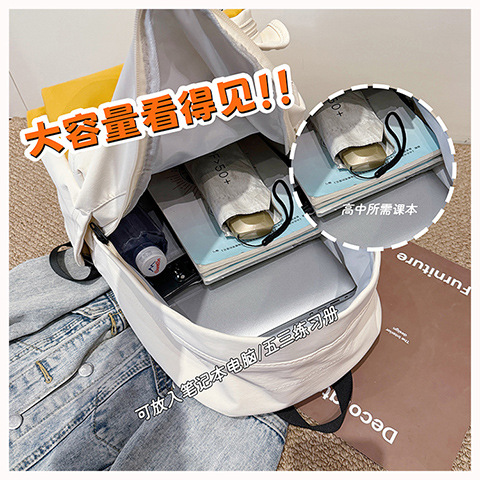 简约百搭双肩包女韩版休闲质感背包大容量纯色轻便书包