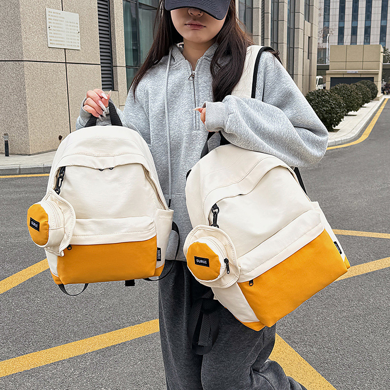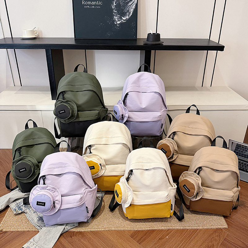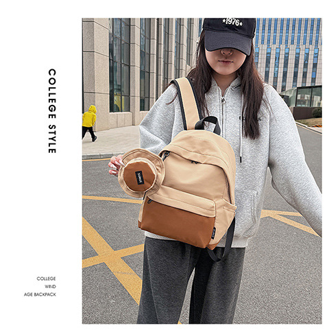 质感洋气休闲蝴蝶结女式新款纯色挂件学院风个性背包双肩包