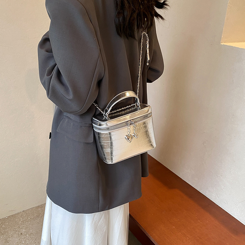高级感银色包包女新款百搭链条斜挎包夏季超火手提盒子小方包