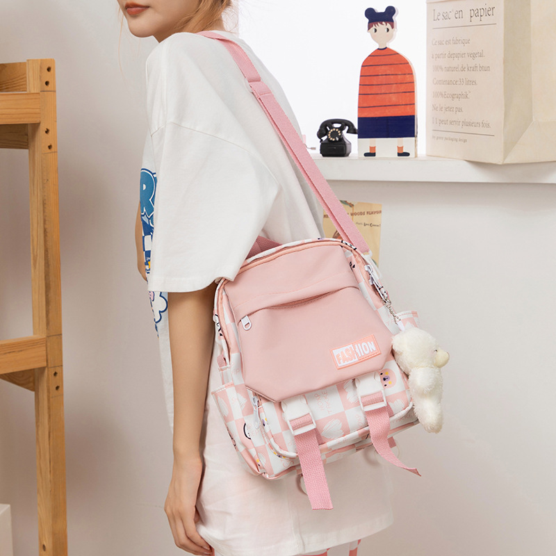 双肩包女帆布拼接书包轻便单肩斜挎小背包女轻便防水