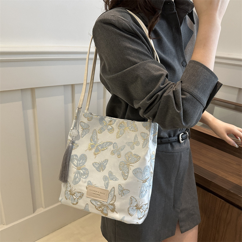 夏季新款碎花韩版帆布斜挎包学生复古手提大布袋腋下包