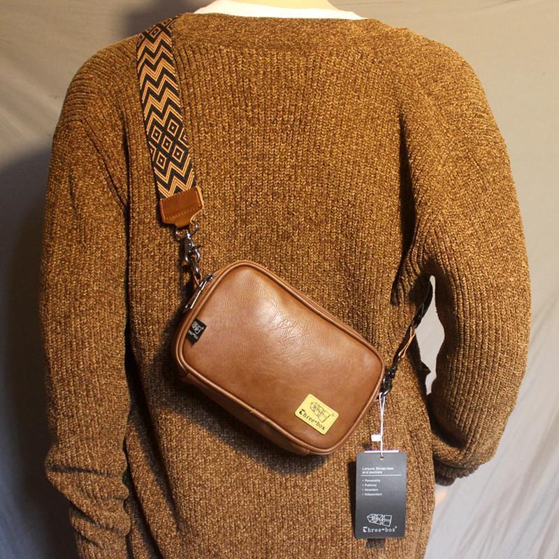 新款潮牌小挎包男士包包背包斜挎包男休闲日系皮质单肩斜肩手机包
